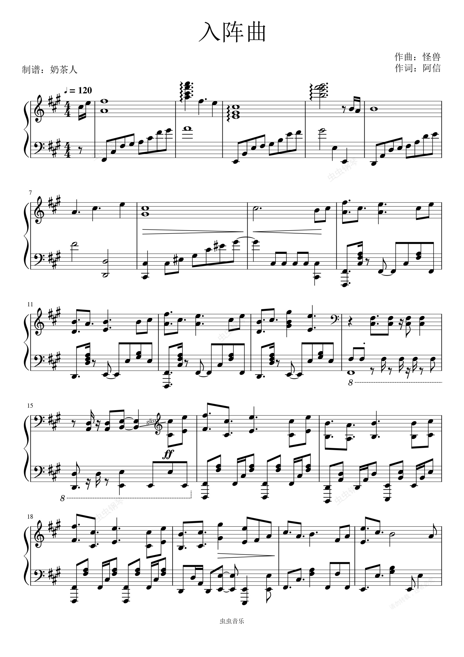钢琴谱:《入阵曲》五月天 电视剧兰陵王 高能极限