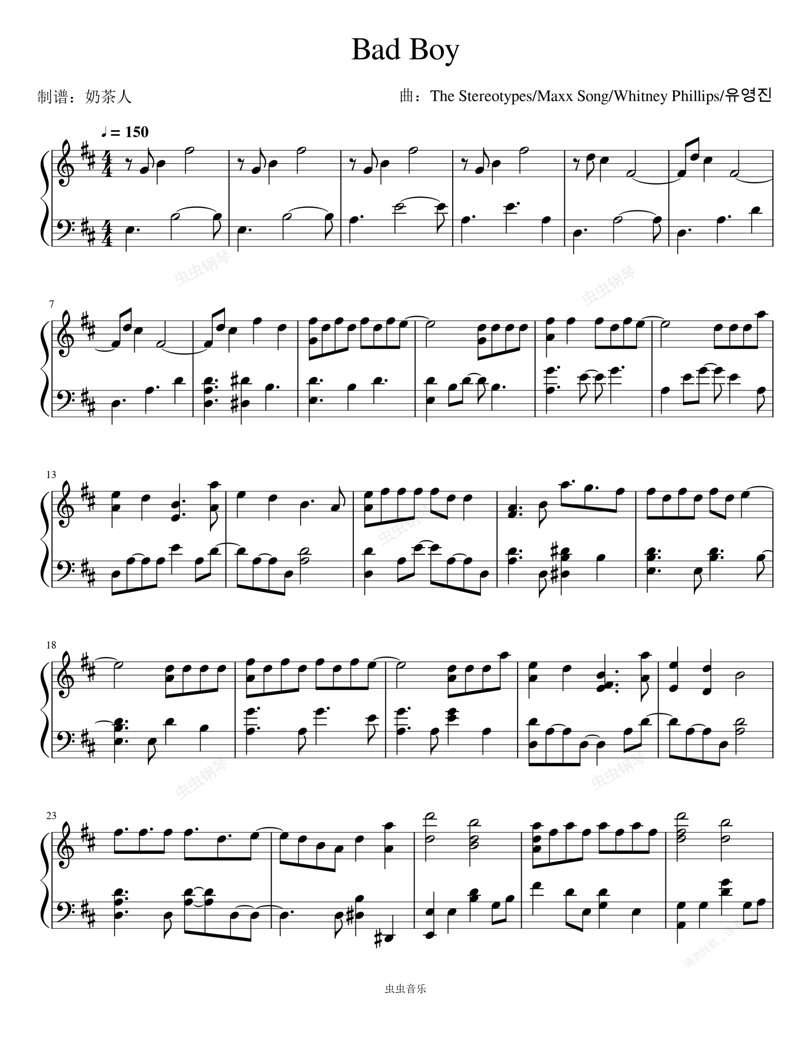钢琴谱:《Bad Boy》 韩团Red Velvet完整版