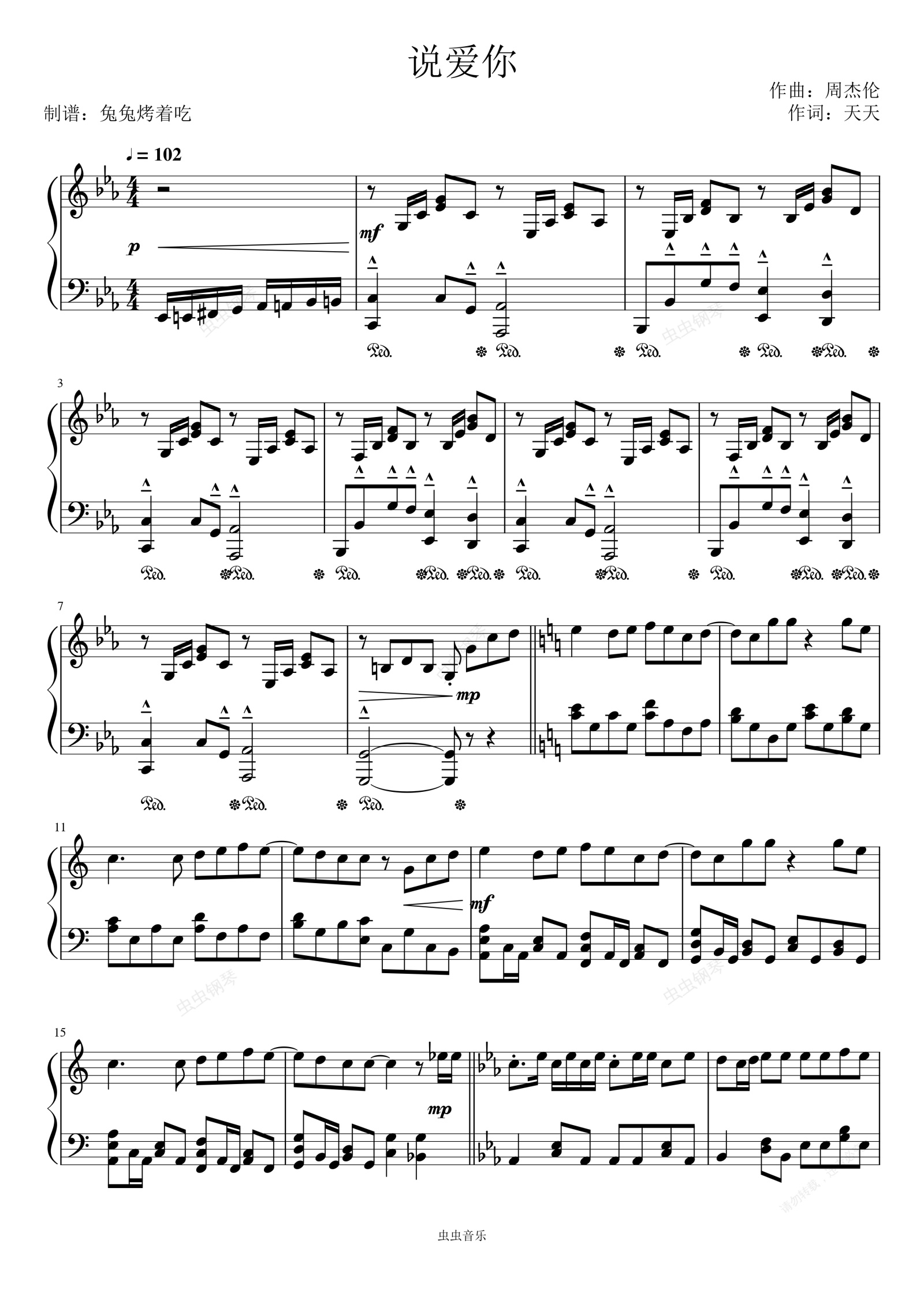钢琴谱:《说爱你》 蔡依林 完整版
