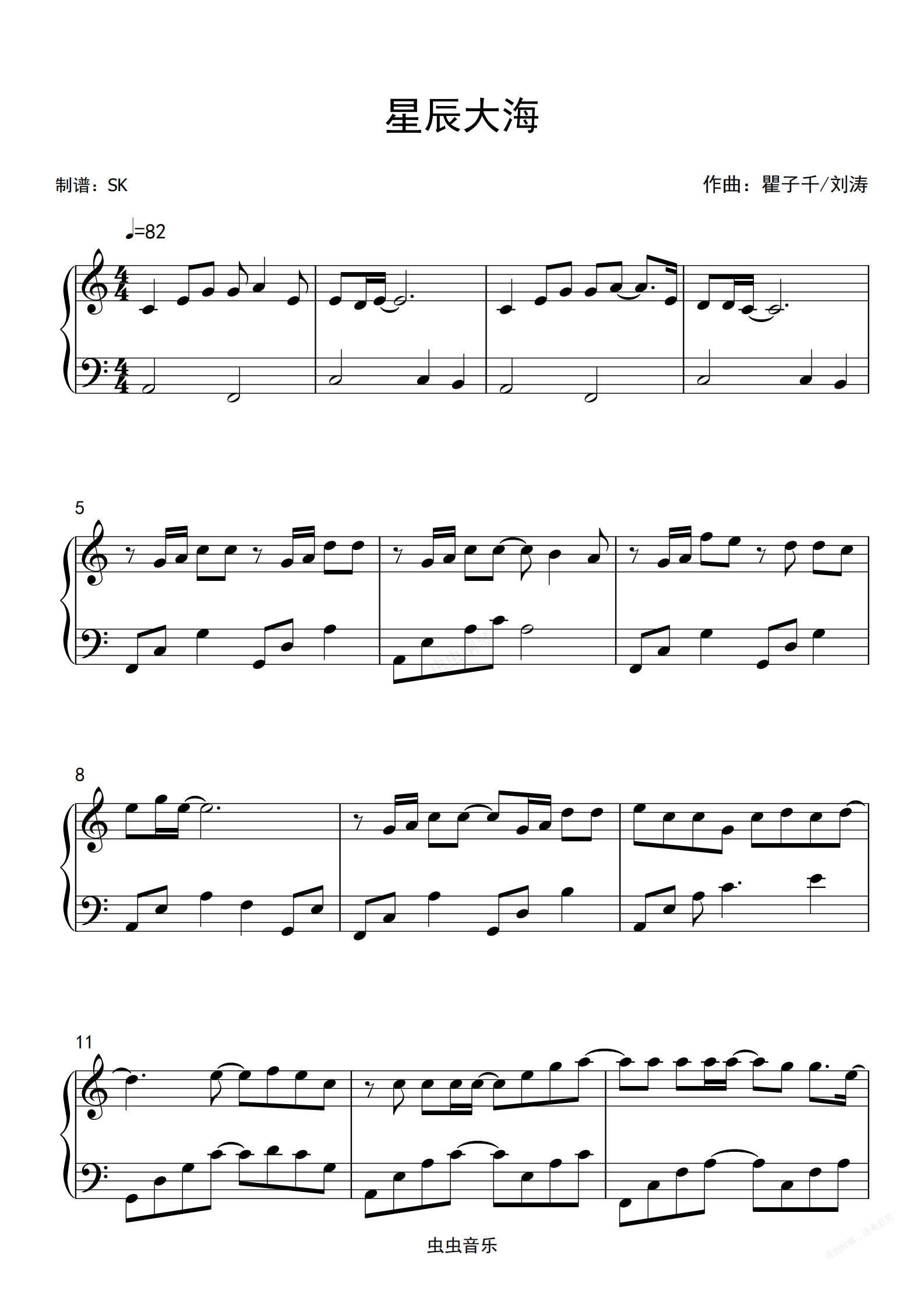 钢琴谱:黄霄云《星辰大海》C调简单版