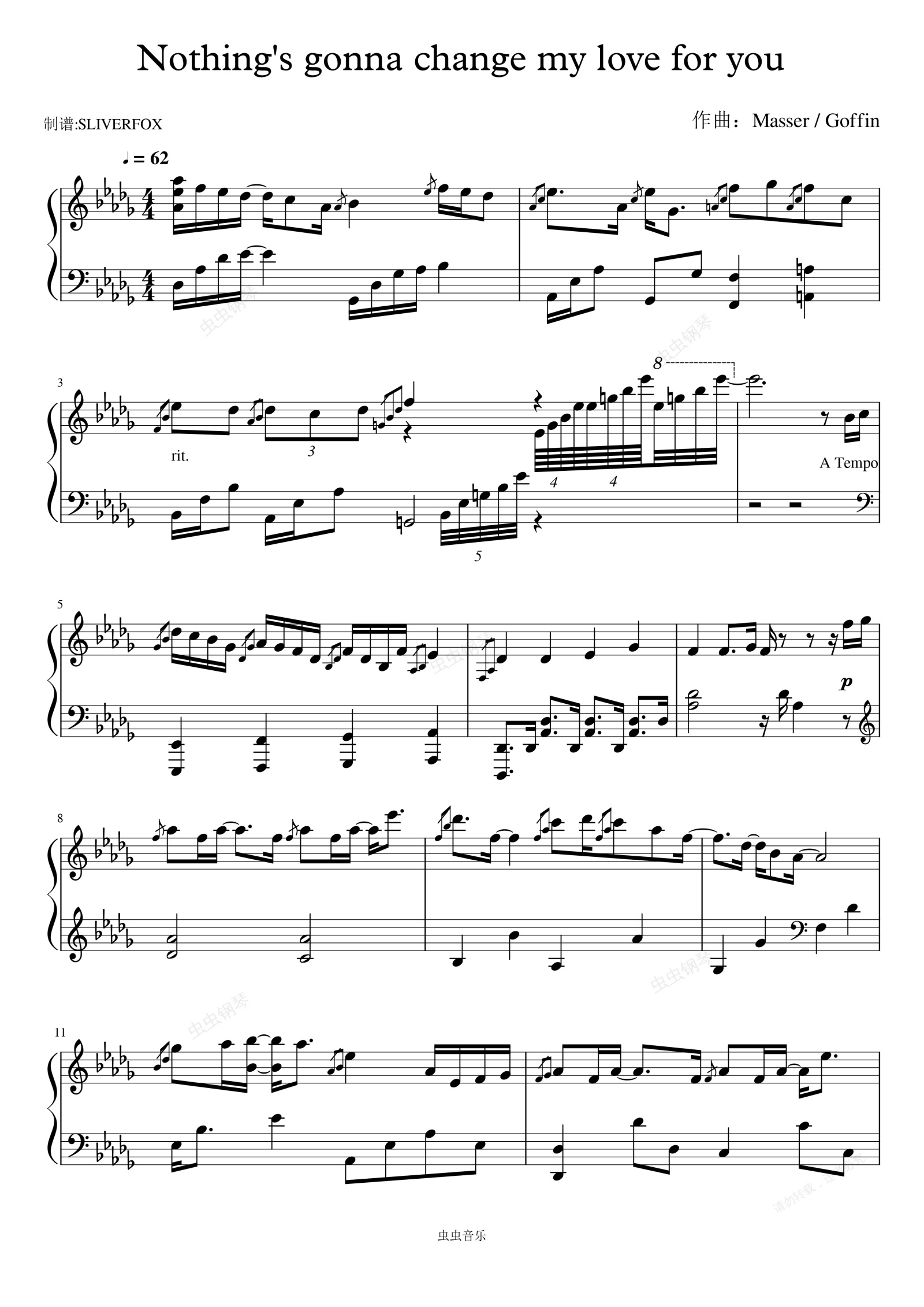 钢琴谱:《Nothing's gonna change my love for you》唯美深情告白版