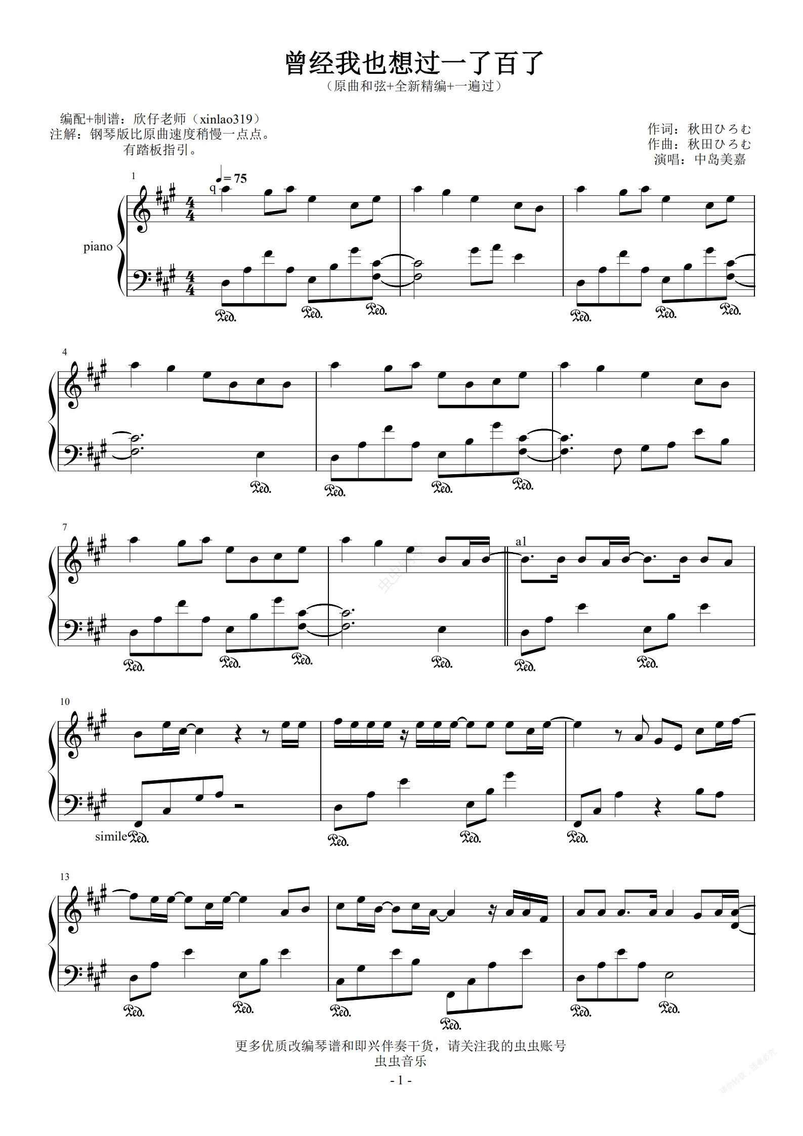 钢琴谱:A转F调-《曾经我也想过一了百了》(原曲和弦+全新精编+一遍过)
