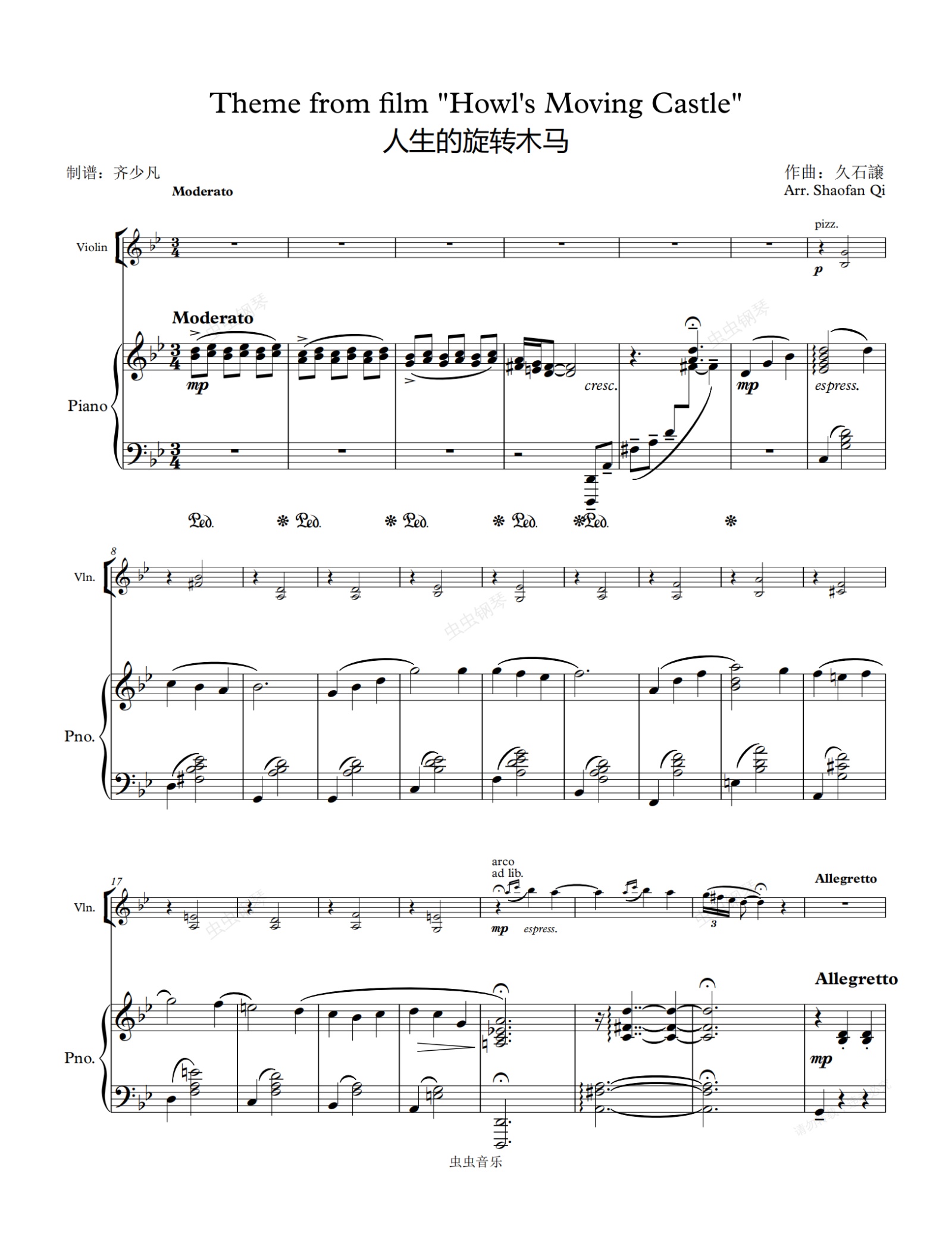 钢琴谱:【小提琴+钢琴】人生的旋转木马-哈尔的移动城堡