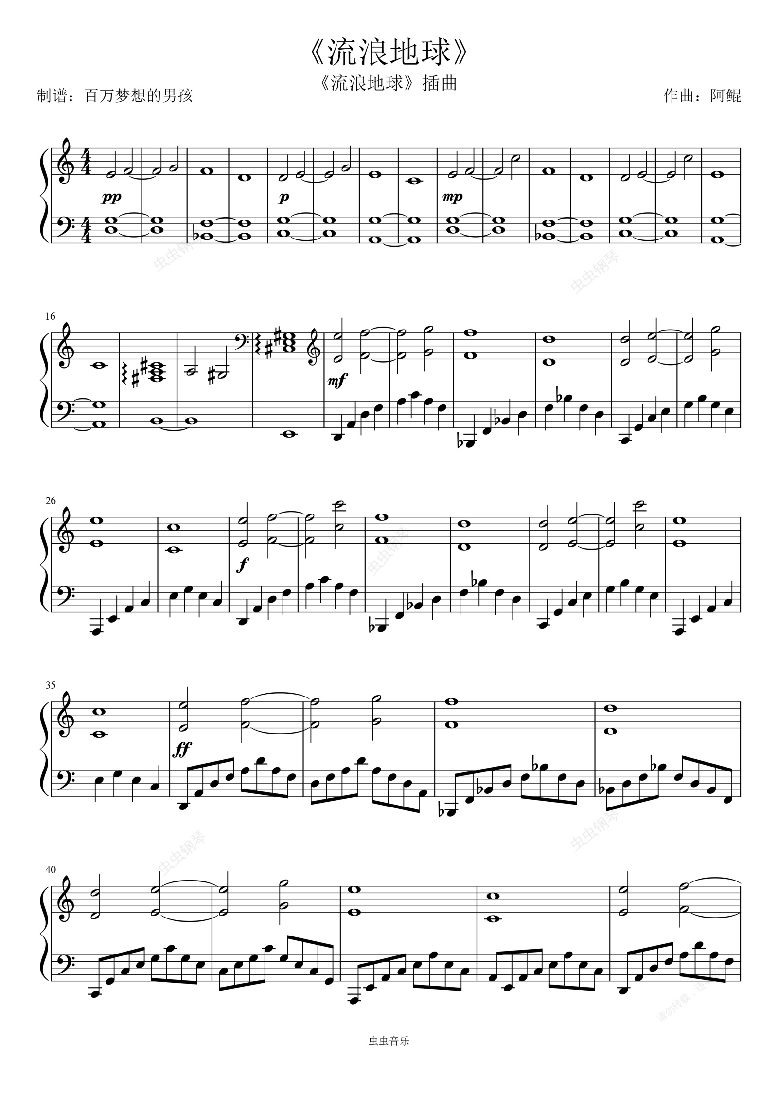 钢琴谱:《流浪地球》插曲