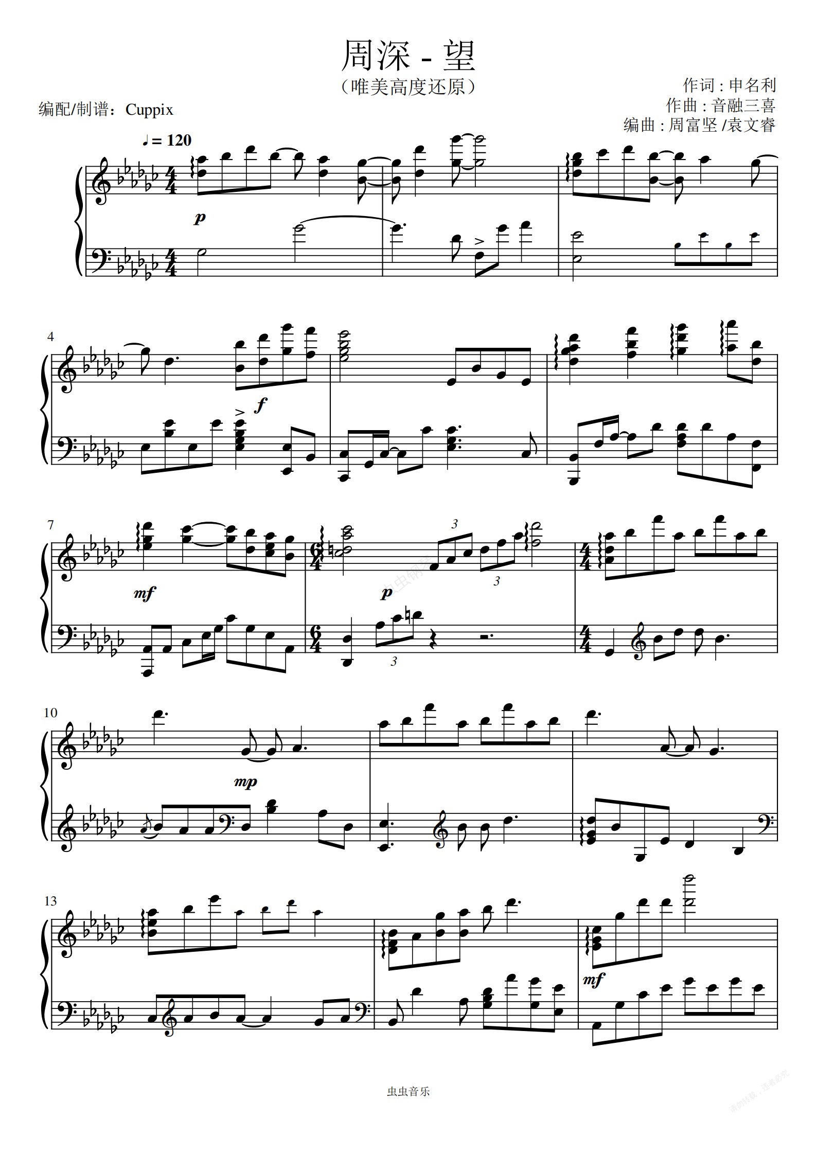 钢琴谱:周深《望》Cuppix改编-唯美高度还原(2021集五福主题曲)