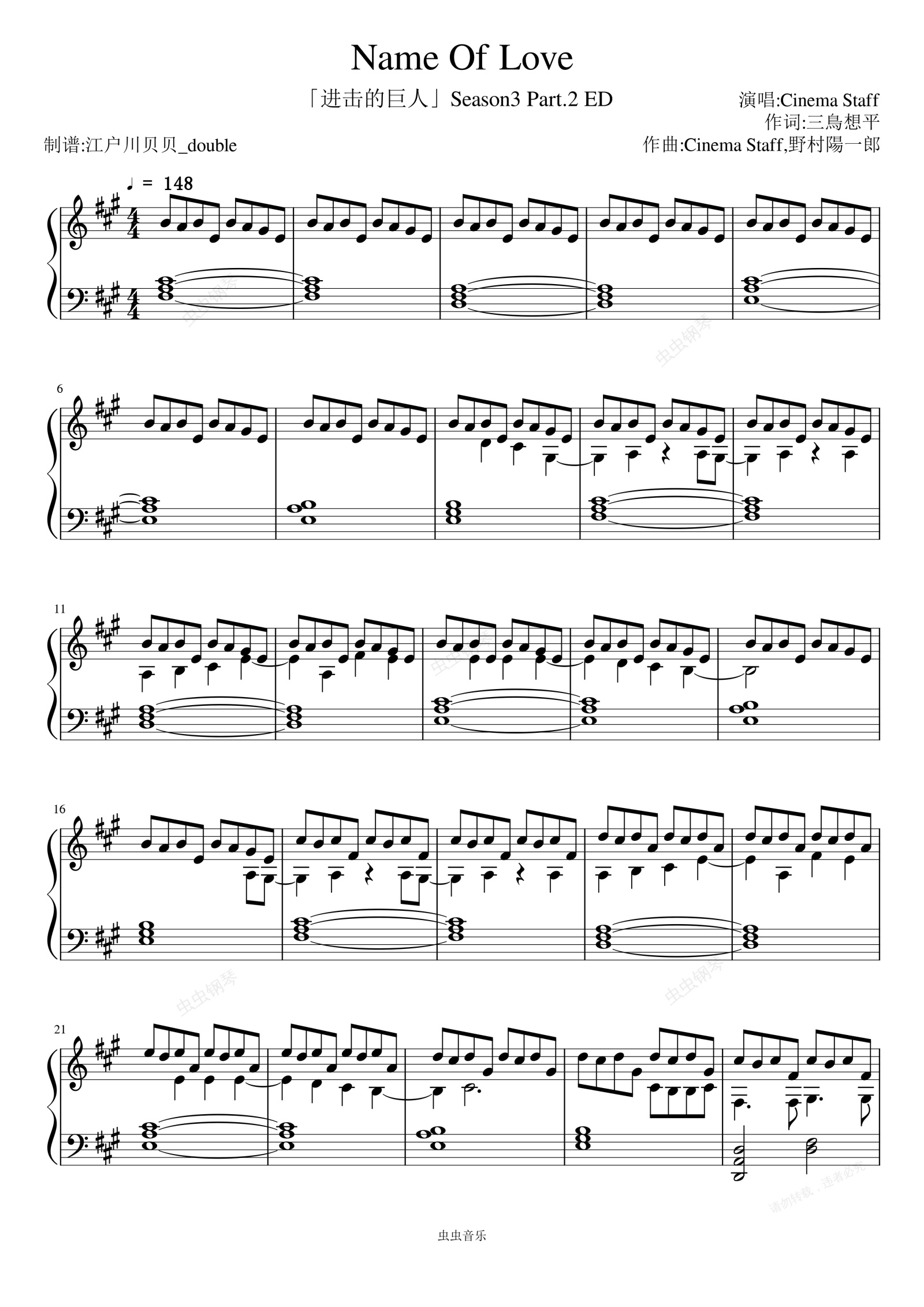 钢琴谱:【进击的巨人】第三季ED2《name of love》(Cinema Staff)