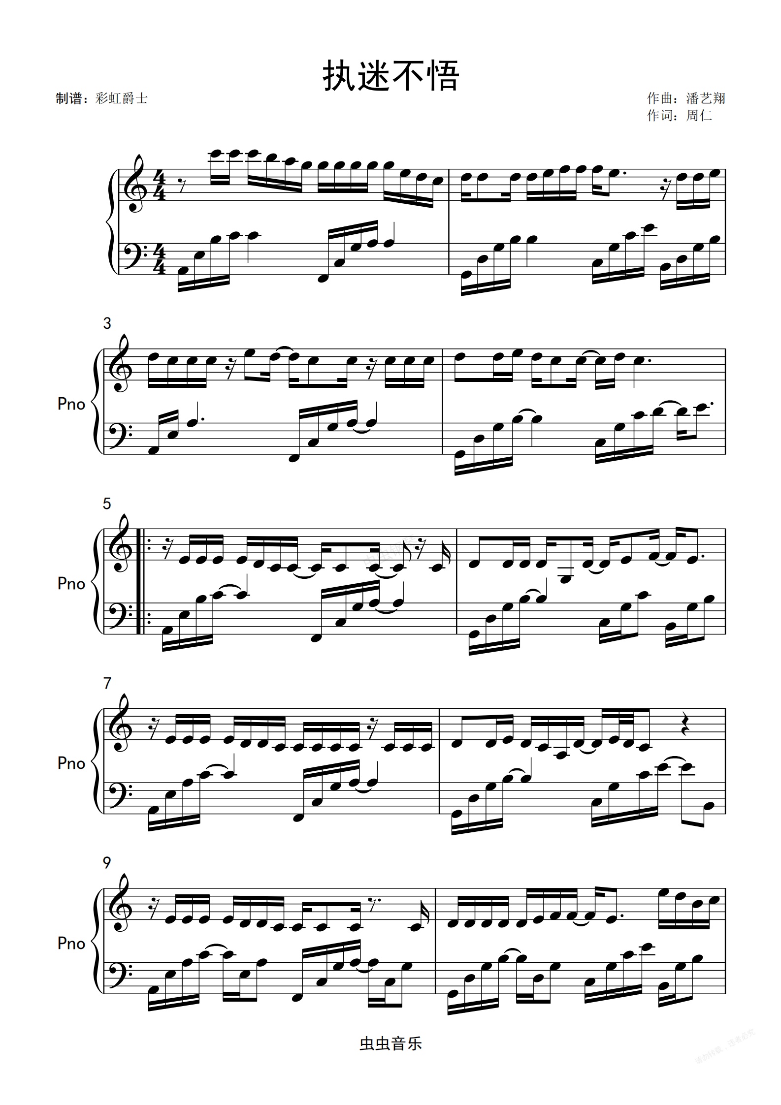 钢琴谱:执迷不悟 C调版 抖音 完整版