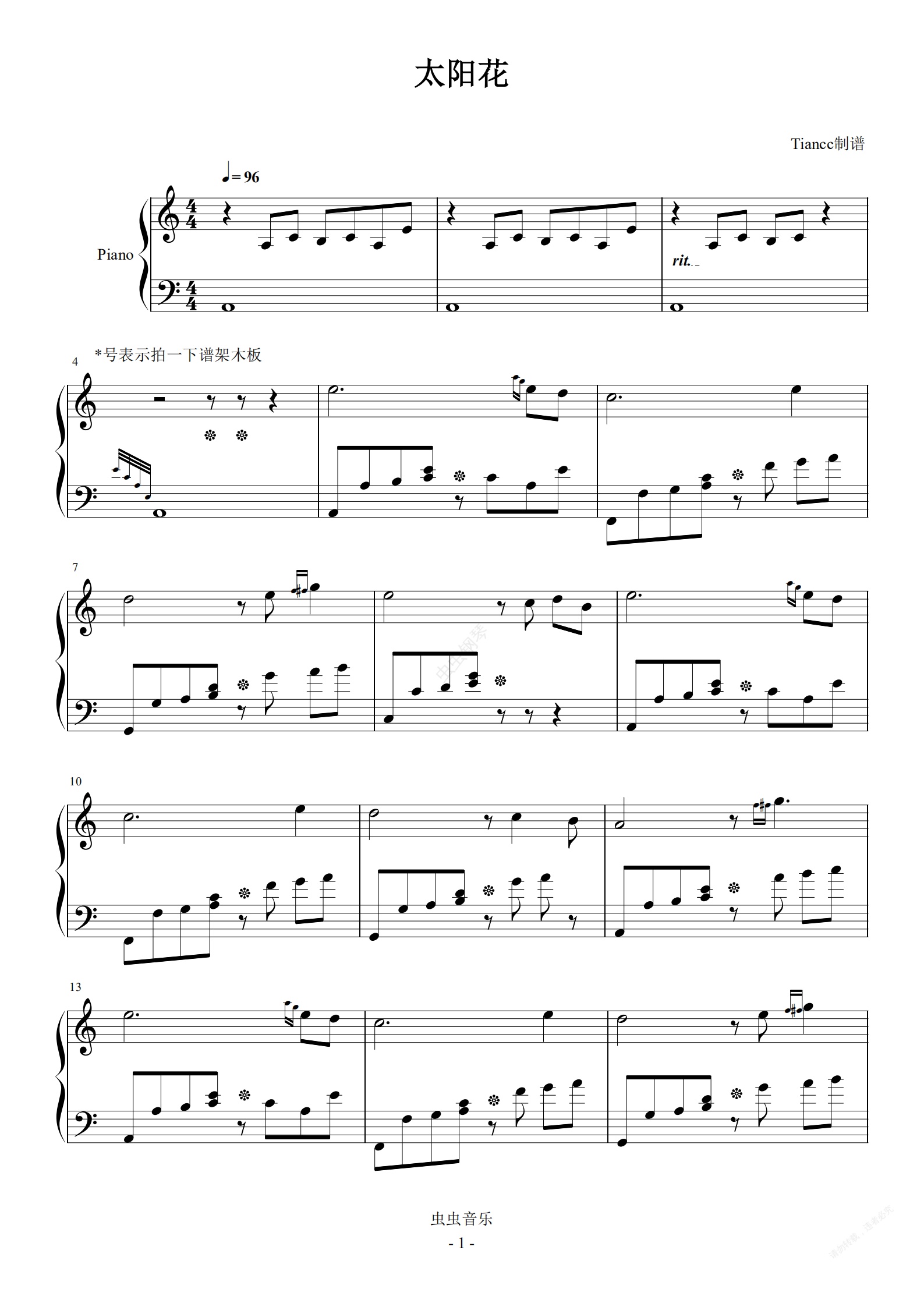 钢琴谱:《太阳花sunflower》用钢琴弹吉他?谱架板敲起来~