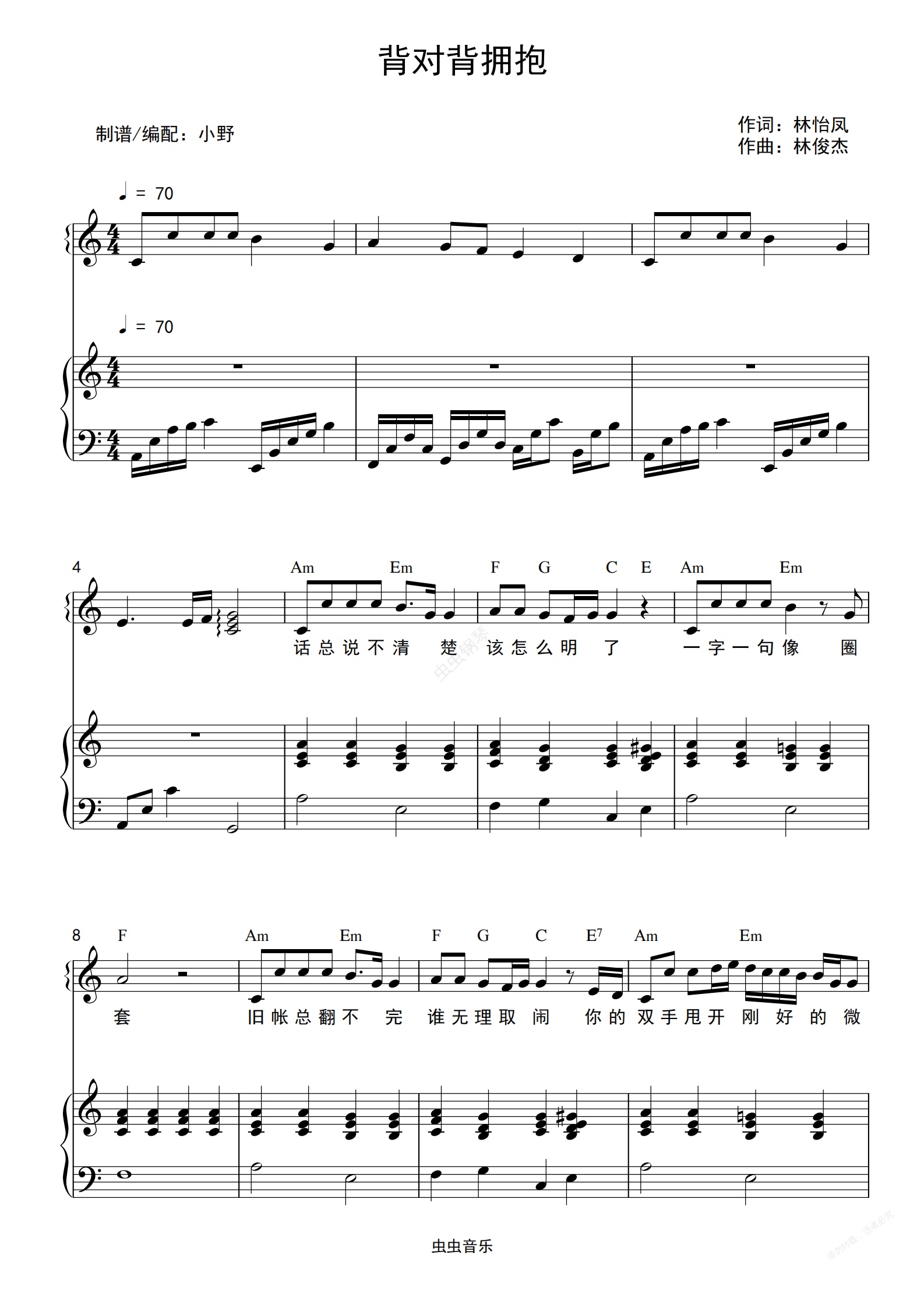 钢琴谱:背对背拥抱(和弦弹唱版)