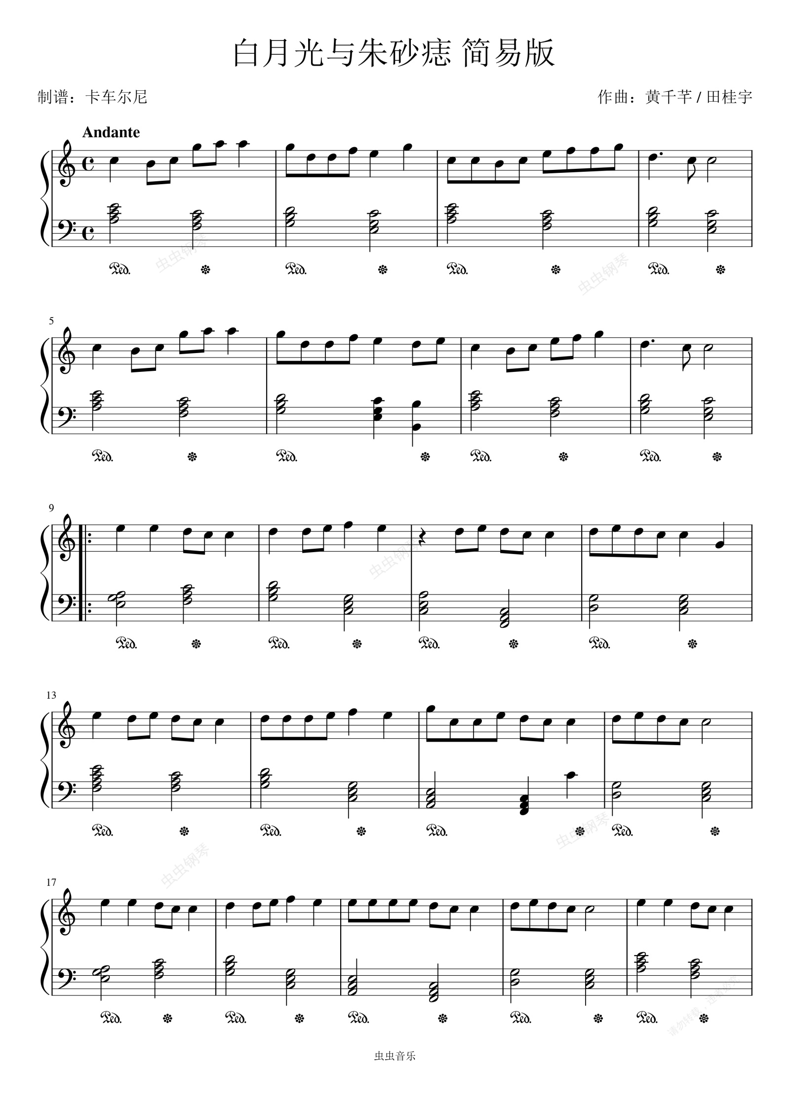 钢琴谱:白月光与朱砂痣 无升降号C大调简单易弹版