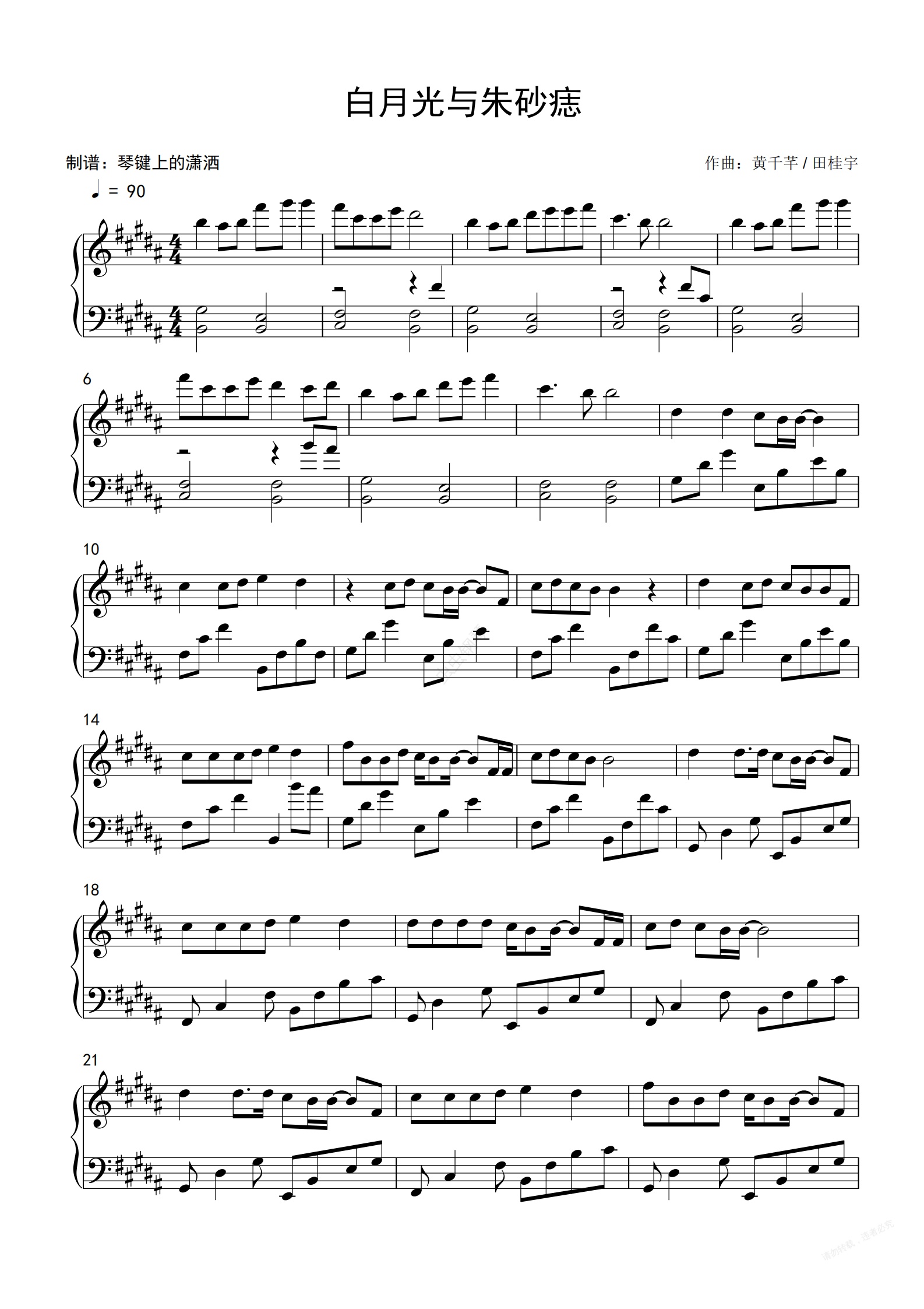 钢琴谱:《白月光与朱砂痣》完美B调独奏