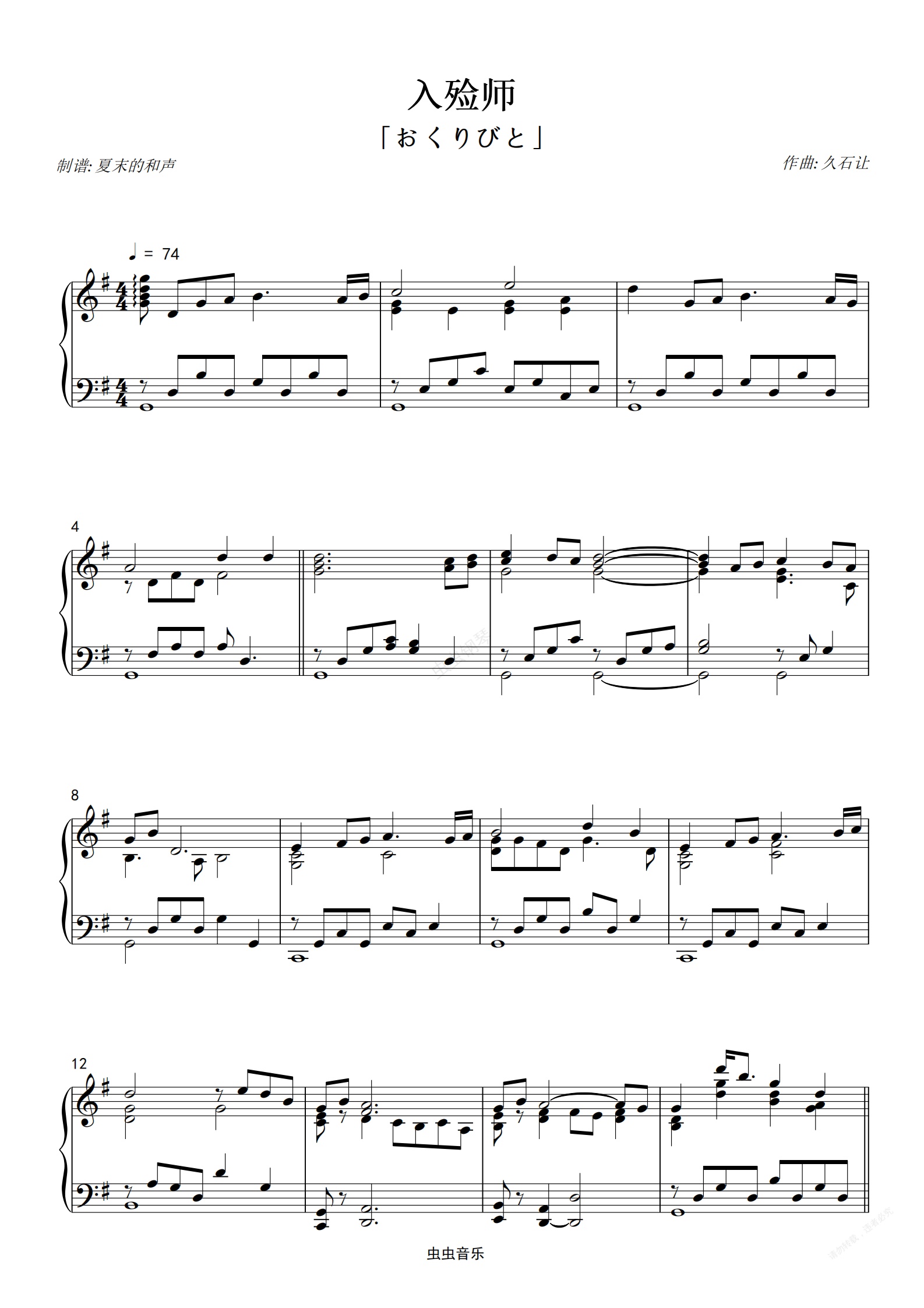 钢琴谱:久石让 -「入殓师」主题曲 - おくりびと