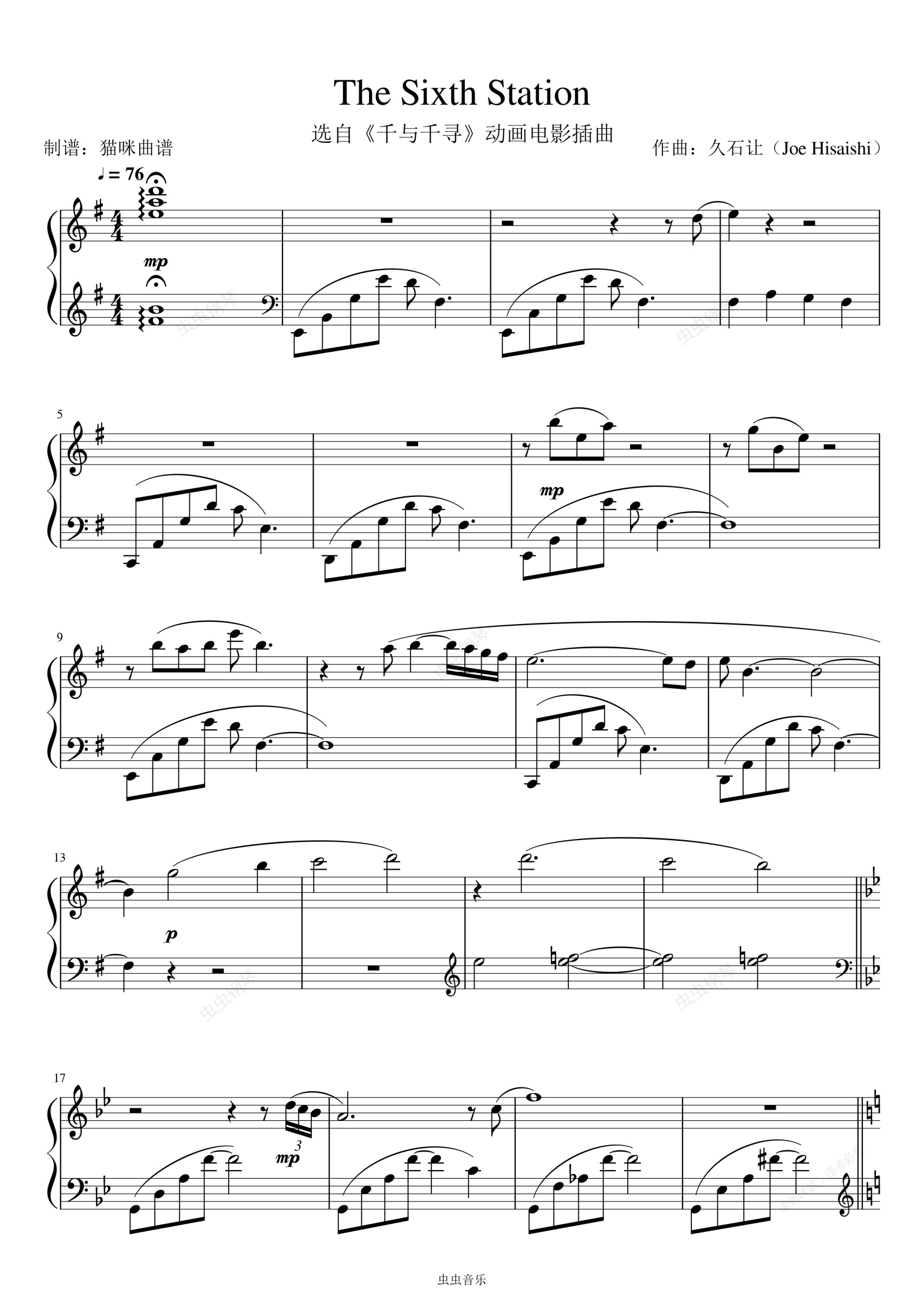 钢琴谱:久石让-《The Sixth Station》选自《千与千寻》动画电影插曲