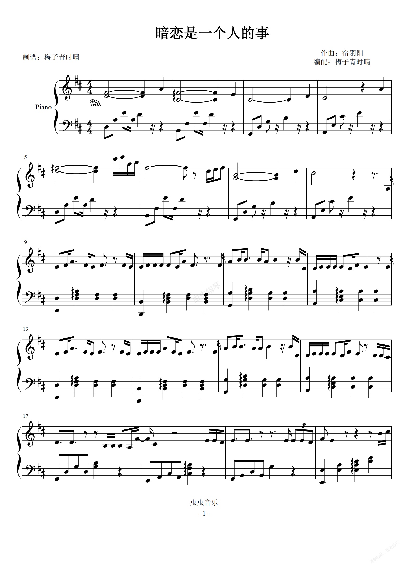 钢琴谱:暗恋是一个人的事(宿羽阳)