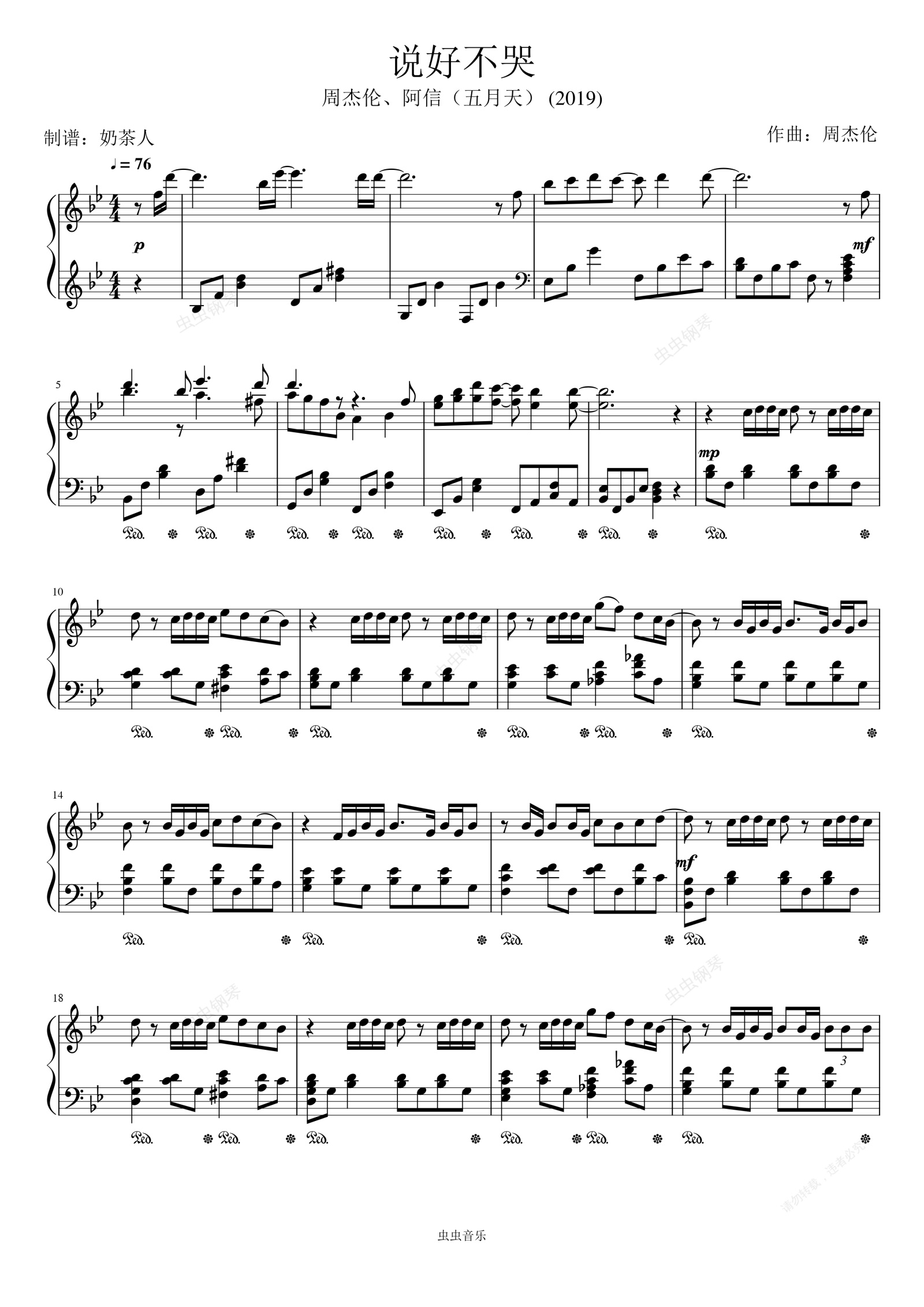 钢琴谱:《说好不哭》 周杰伦、阿信 完整版
