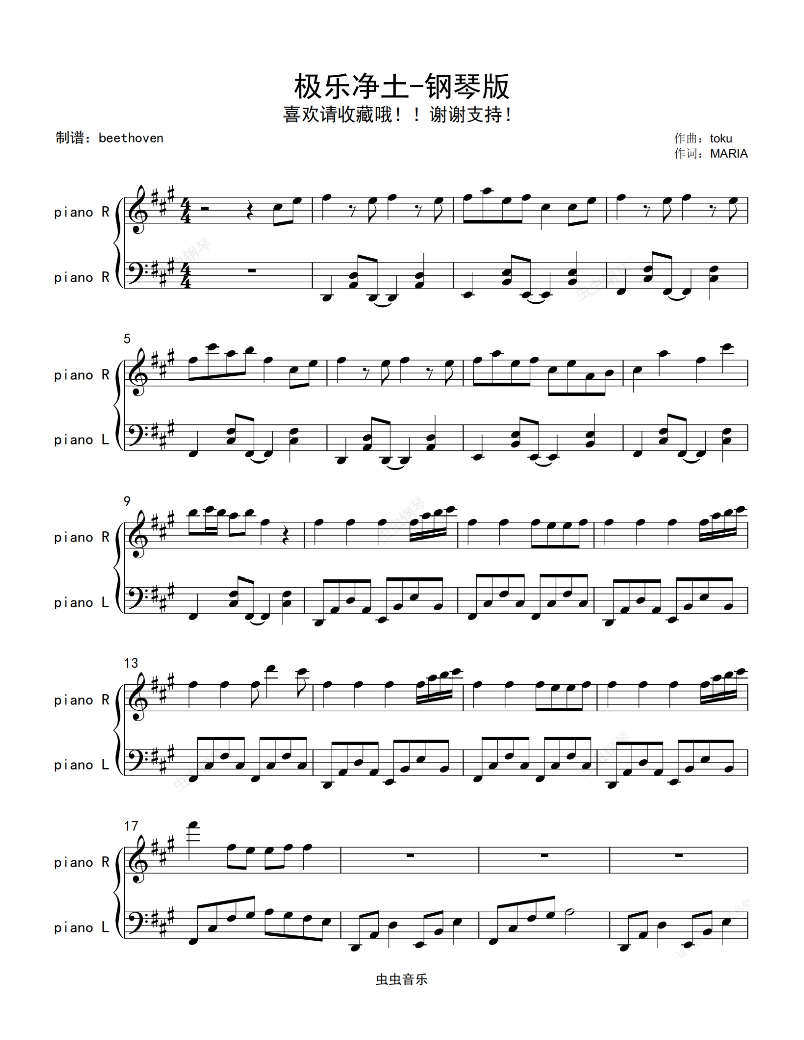 钢琴谱:极乐净土_钢琴独奏(简单)