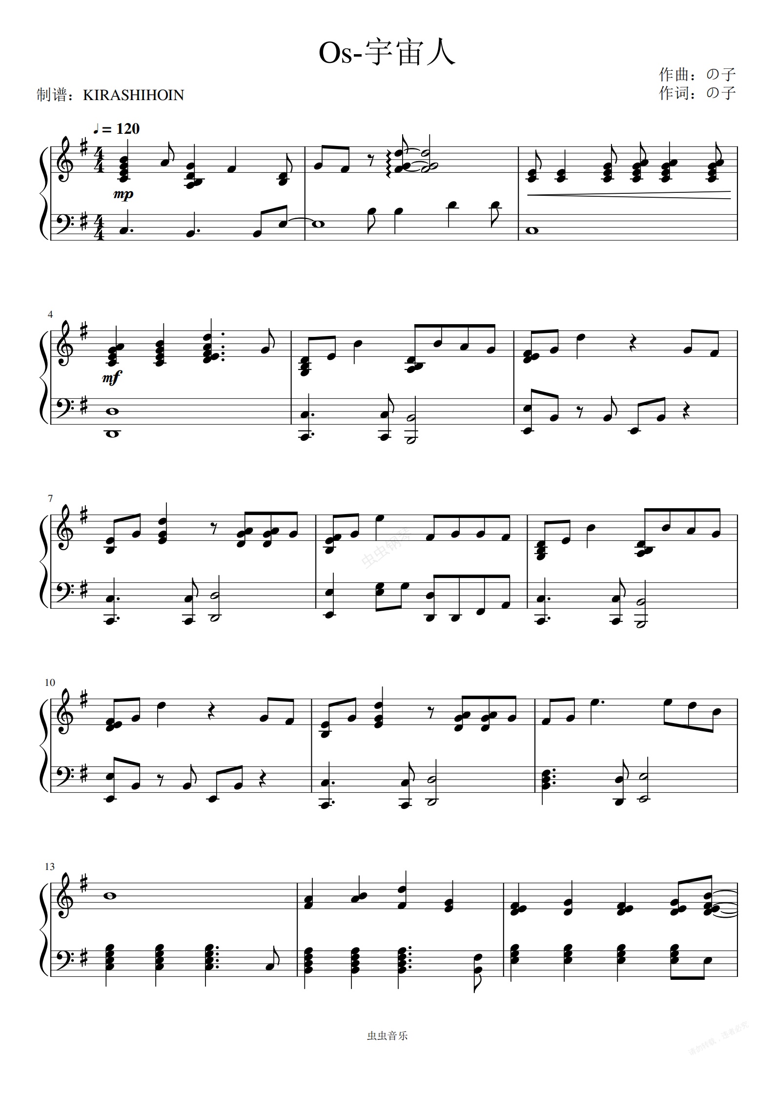 钢琴谱:Os-宇宙人(《电波女与青春男》OP)
