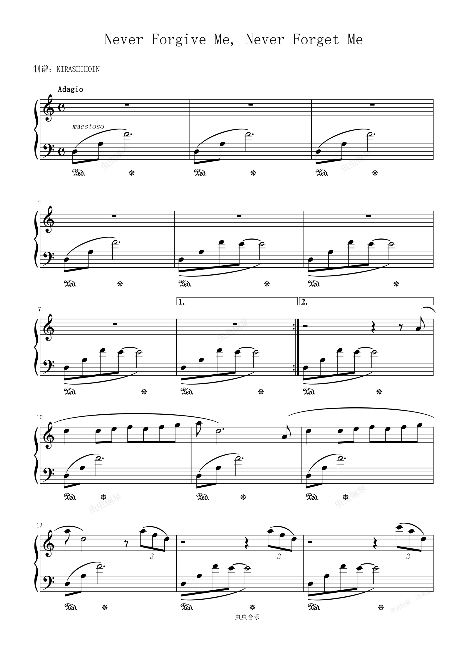 钢琴谱:Never Forgive Me, Never Forget Me(《寂静岭3》插曲)