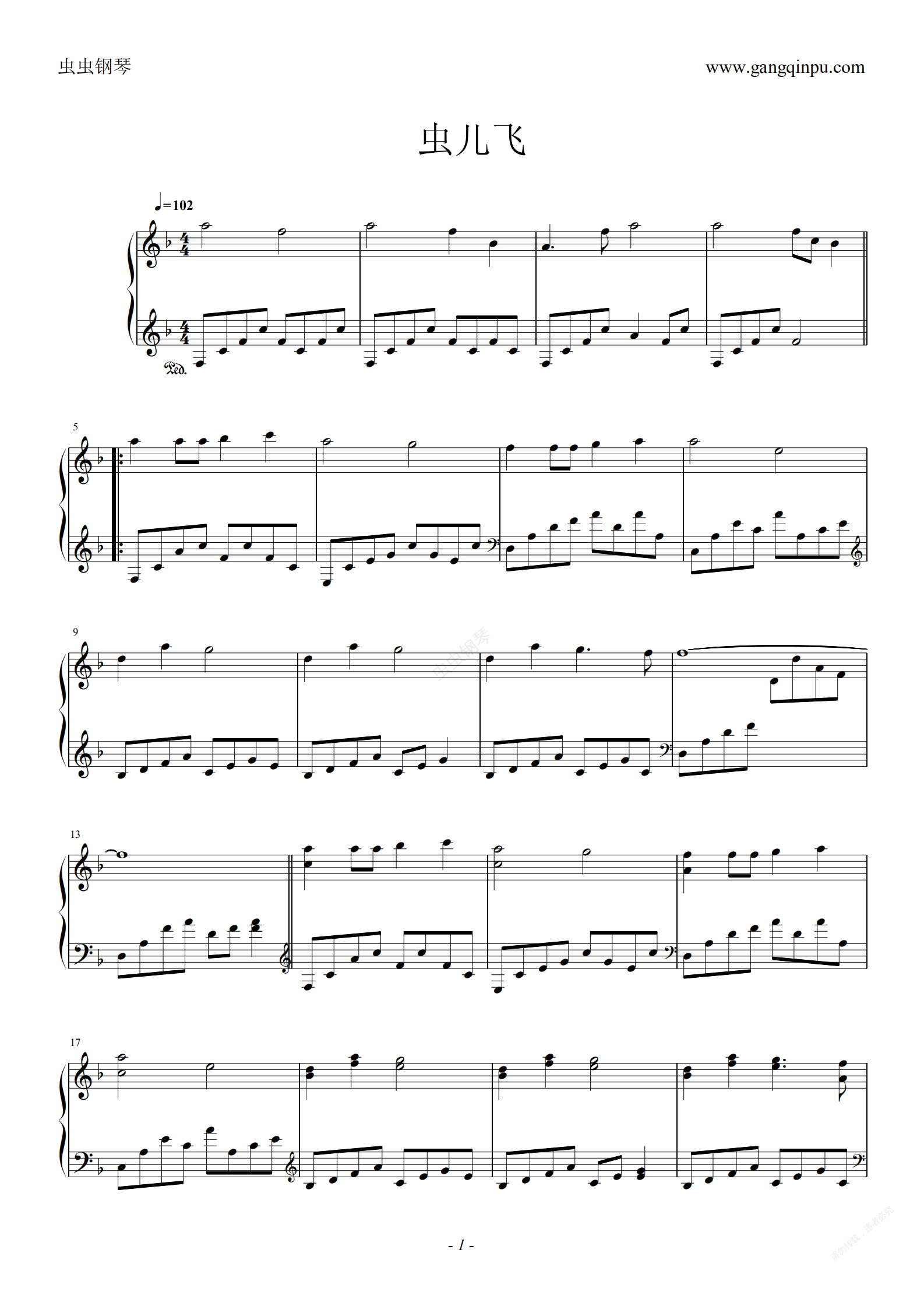钢琴谱:虫儿飞