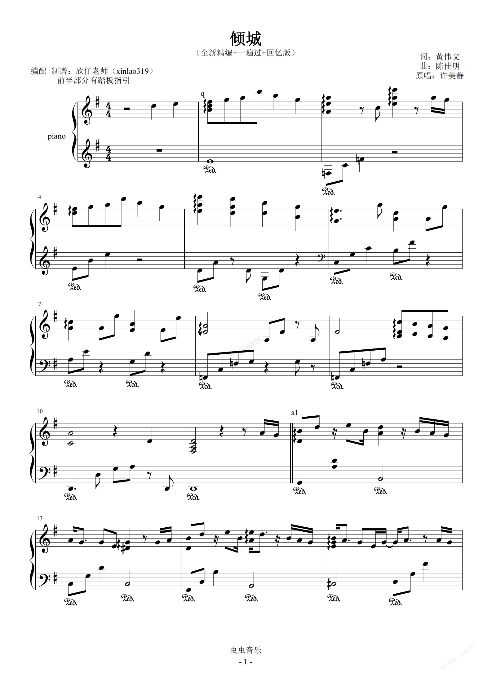 钢琴谱:G调《倾城》(全新精编+一遍过+回忆版)