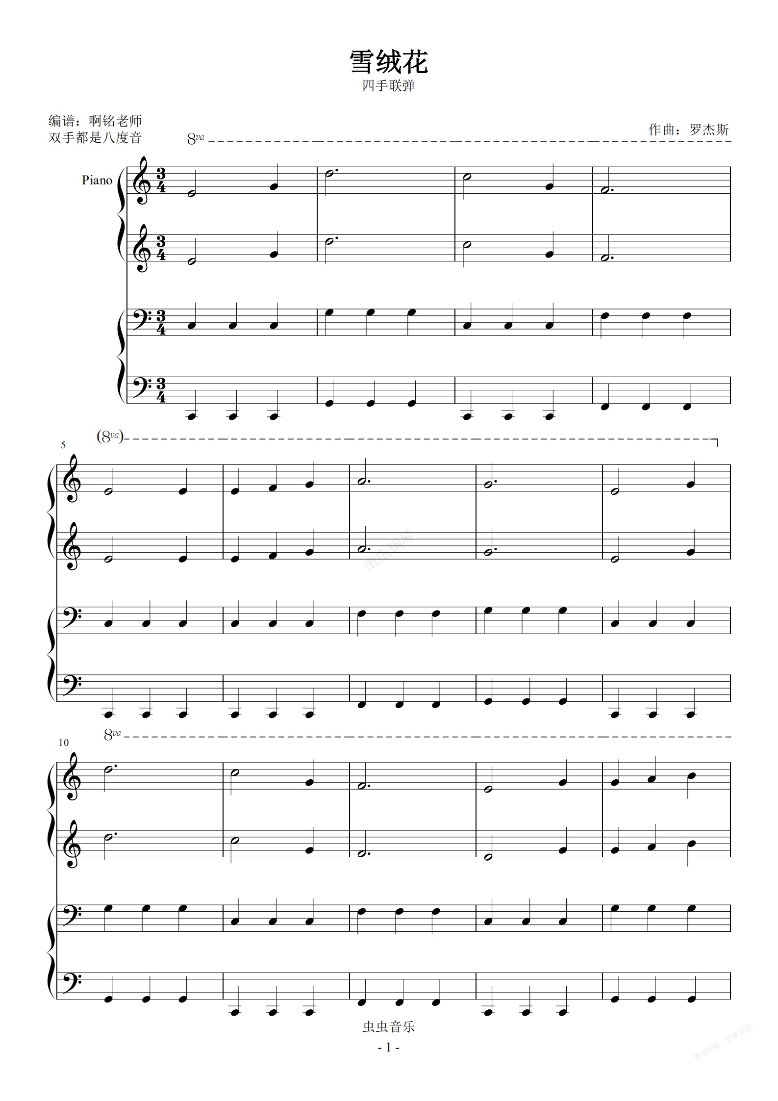 钢琴谱:雪绒花 四手联弹 小汤2难度
