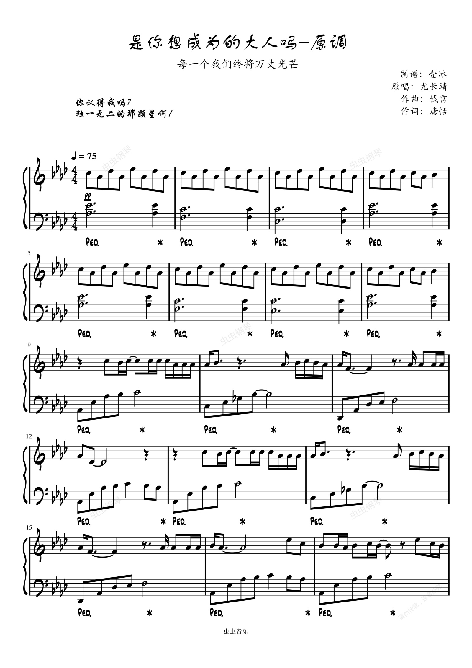 钢琴谱:是你想成为的大人吗//尤长靖-原调壹冰钢琴