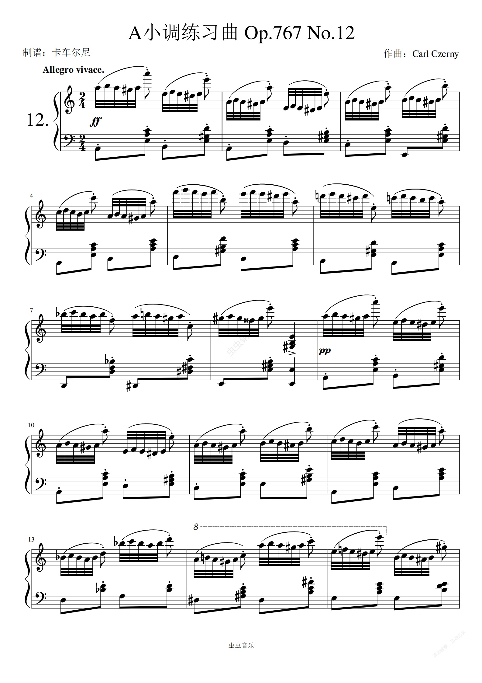 钢琴谱:车尔尼a小调练习曲Op.767 No.12