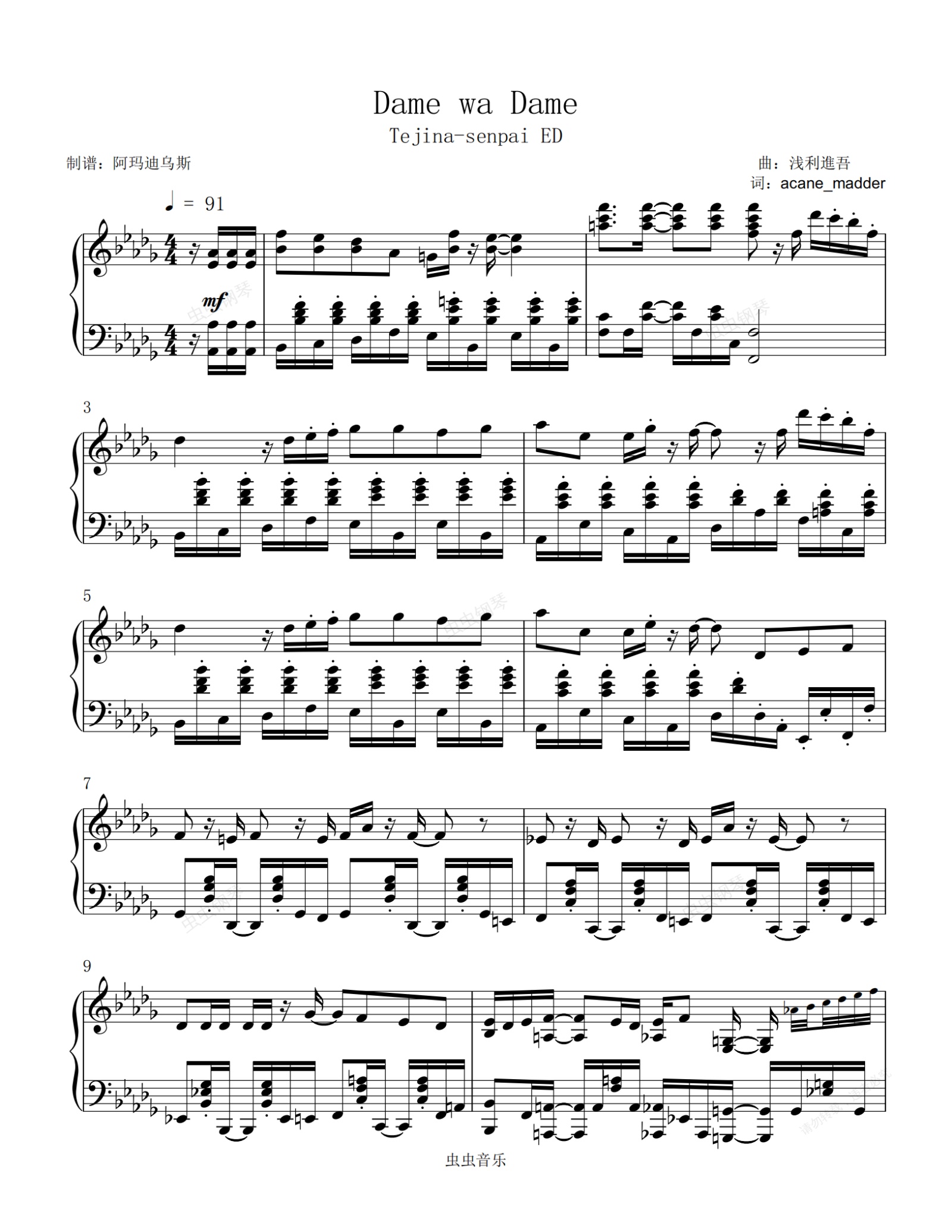 钢琴谱:魔术学姐 ED < ダメハダメ > Dame wa Dame 原调高还原完整版本