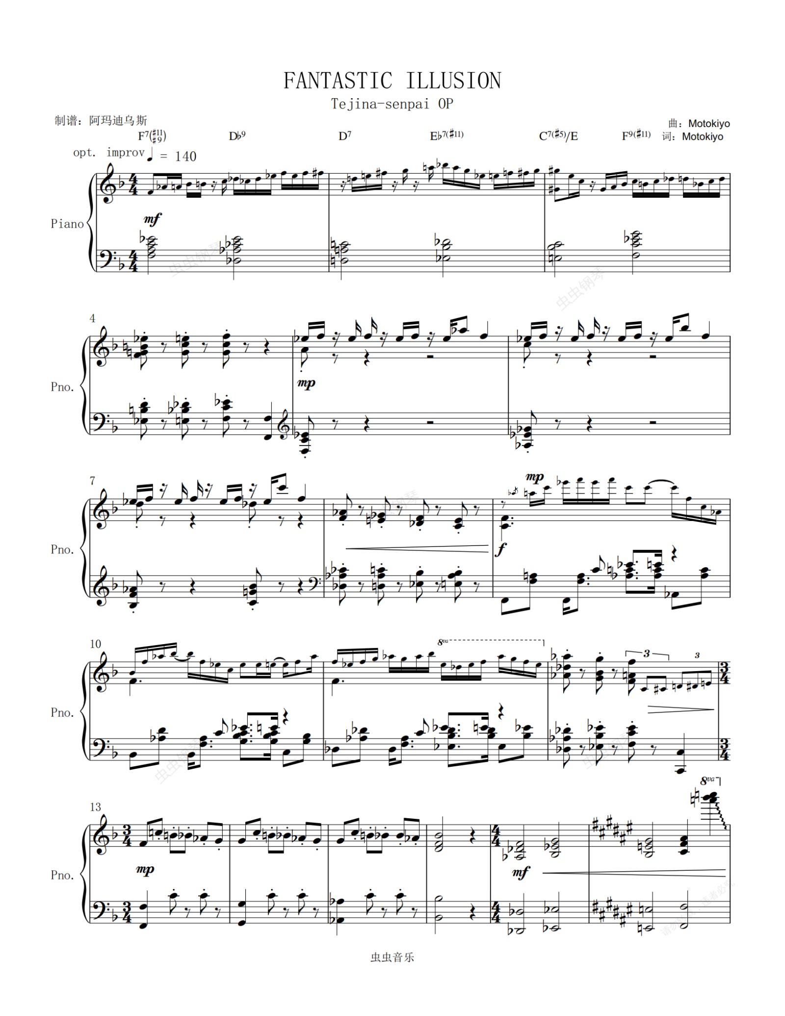 钢琴谱:魔术学姐 OP < FANTASTIC ILLUSION > 原调高还原完整版本