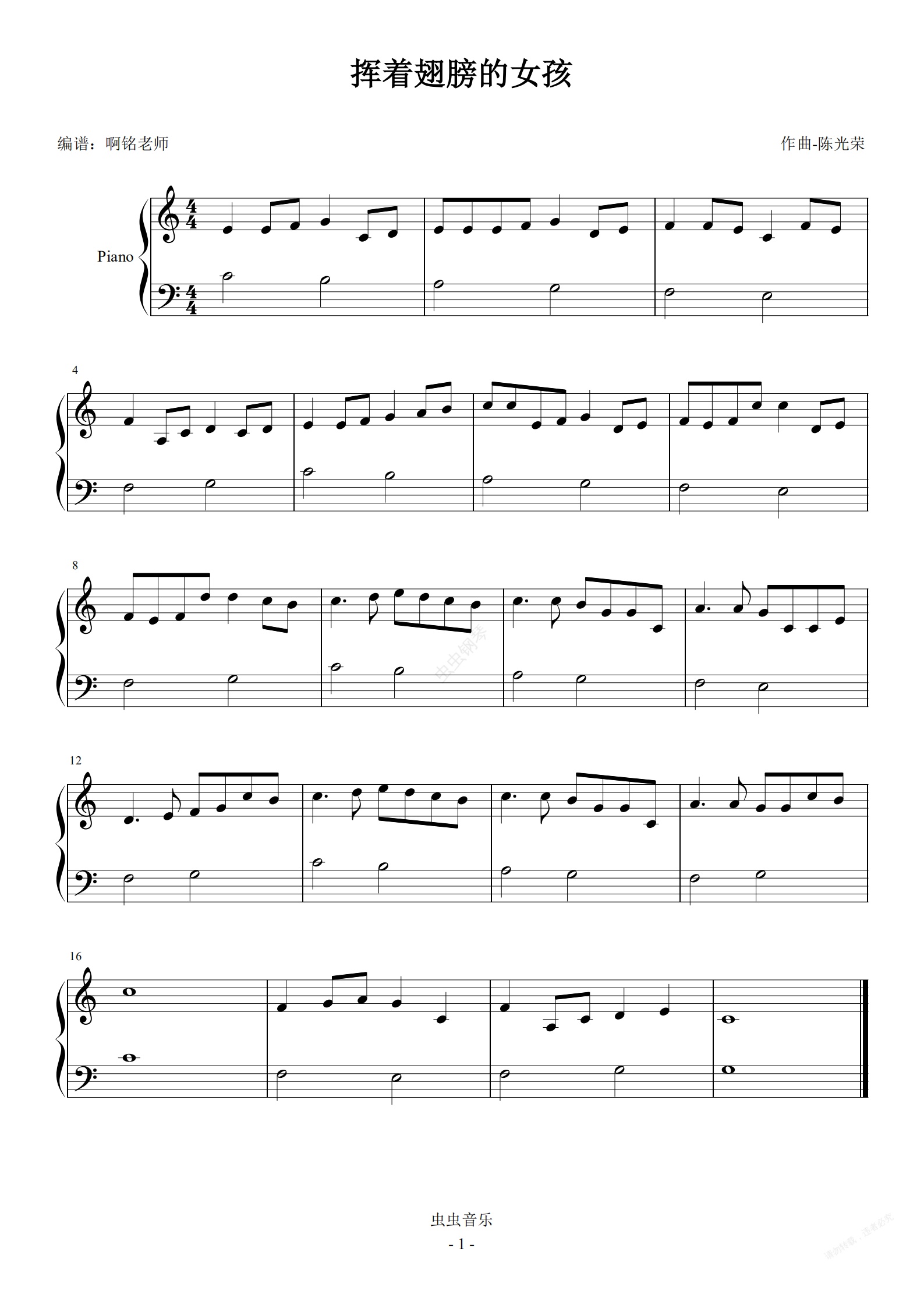 钢琴谱:挥着翅膀的女孩 小汤3 难度