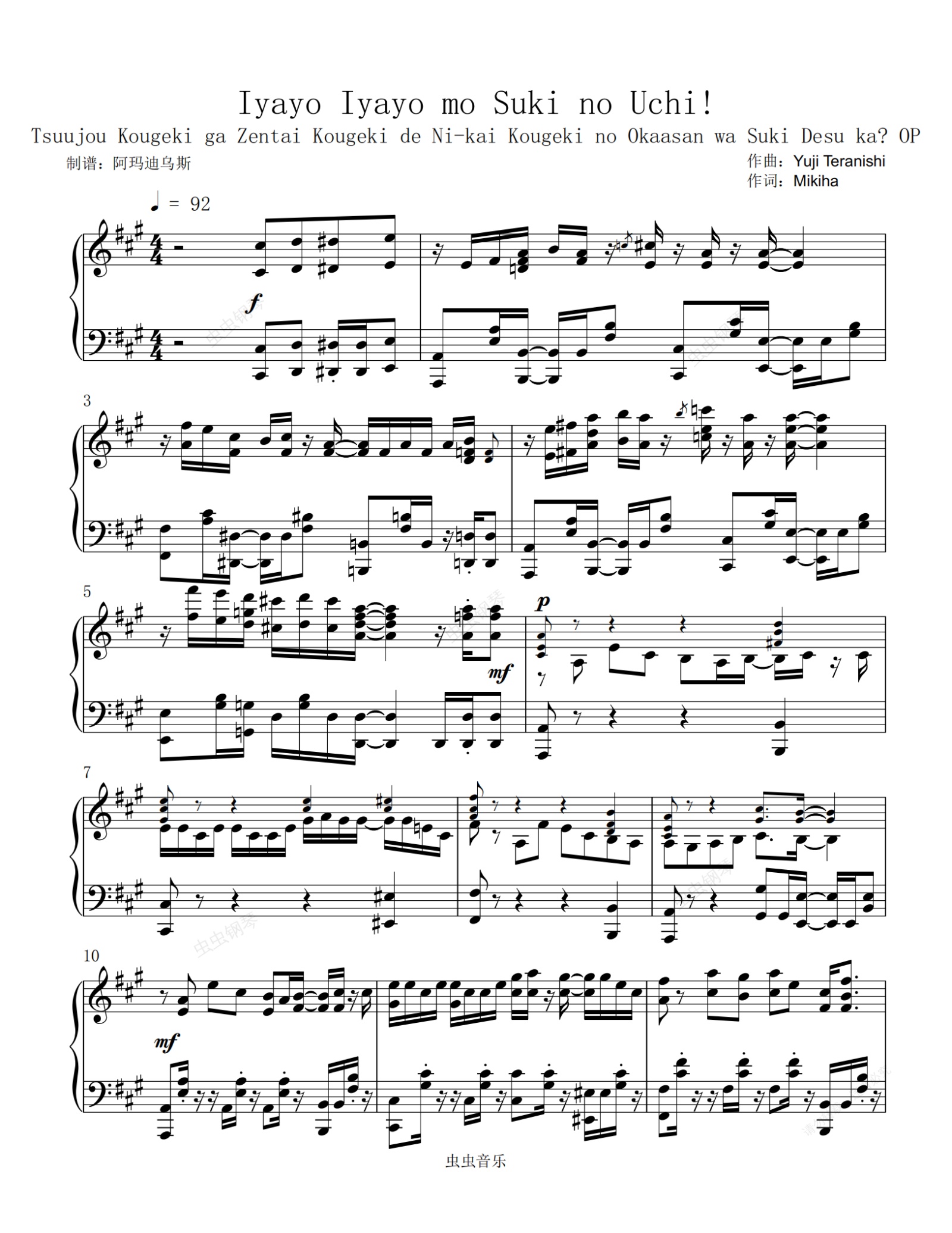 钢琴谱:普通攻击是全体二连击,这样的妈妈你喜欢吗?OP < イヤヨイヤヨモスキノウチ > 原调高还原完整版本