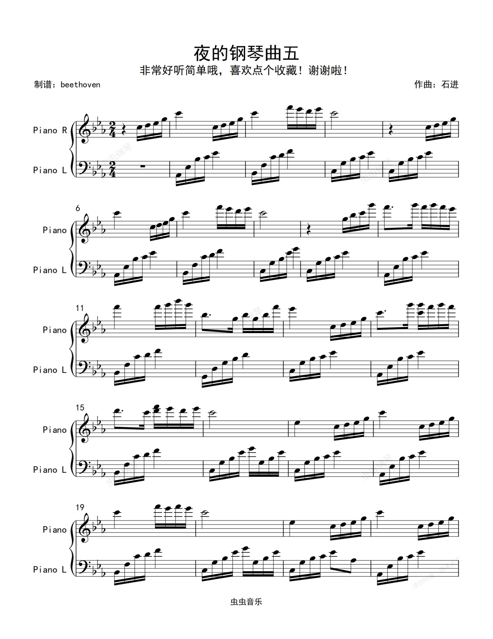 钢琴谱:夜的钢琴曲五(超好听版简单)