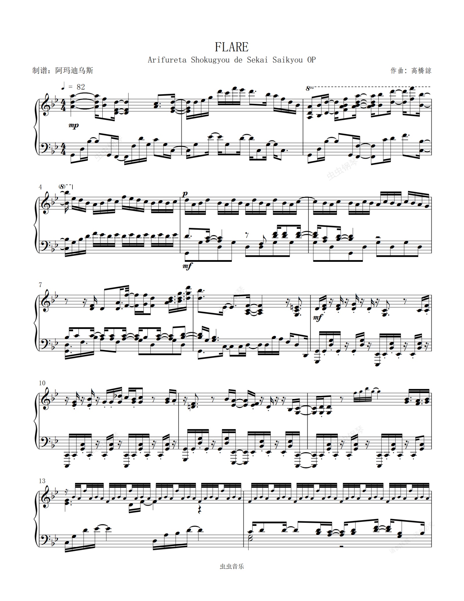 钢琴谱:平凡职业造就世界最强 OP < FLARE > 原调高还原完整版本