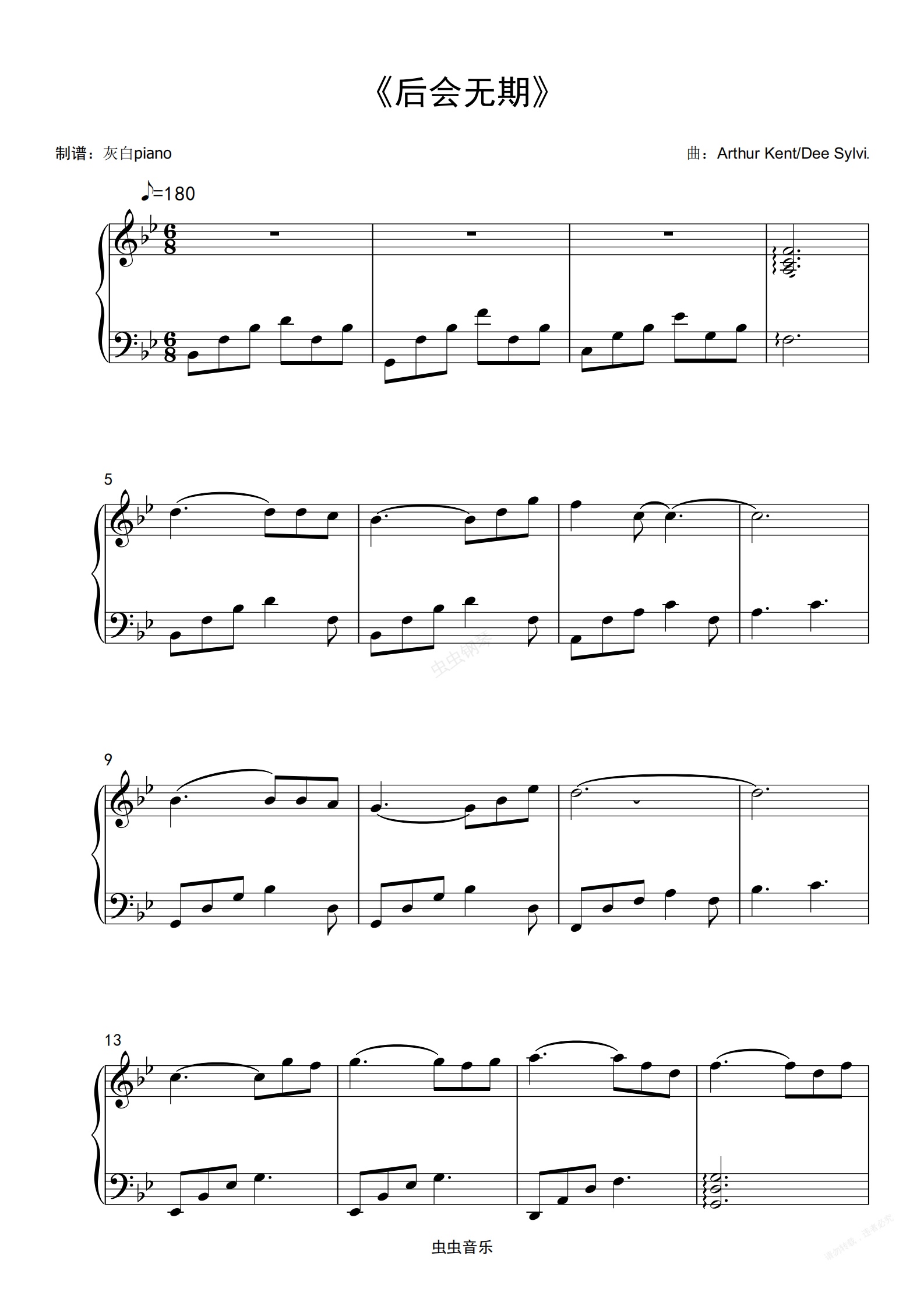 钢琴谱:后会无期【降b调简易优美版】-灰白piano