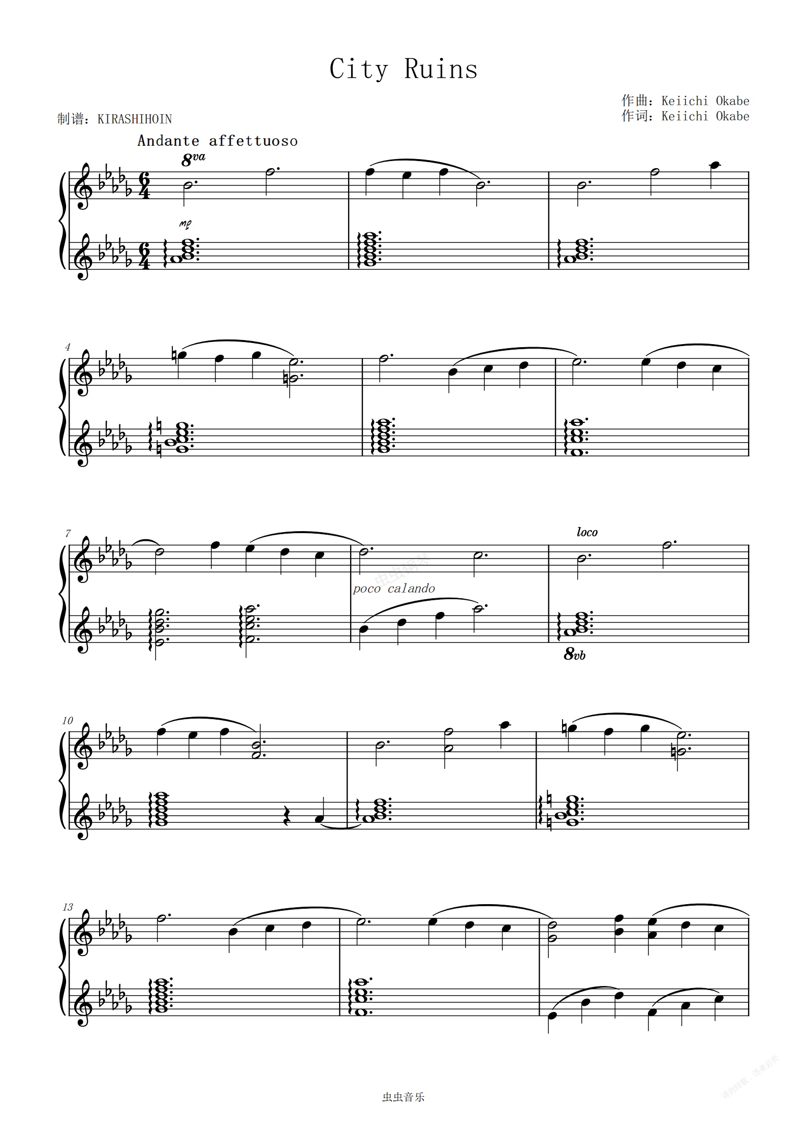 钢琴谱:City Ruins(《尼尔:机械纪元/NieR: Automata》插曲)