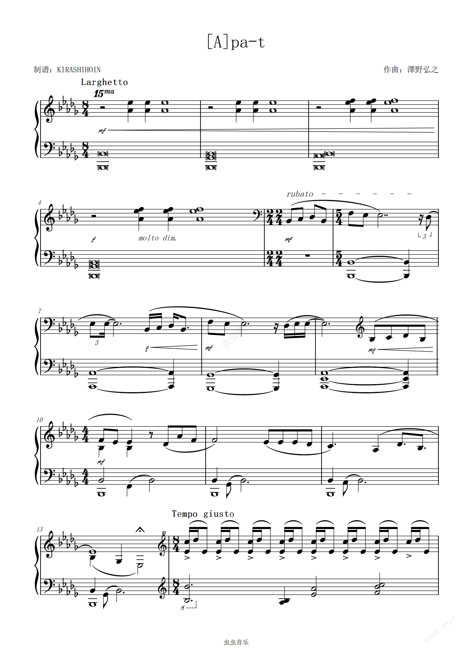钢琴谱:[A]pa-t(《终结的炽天使》插曲)