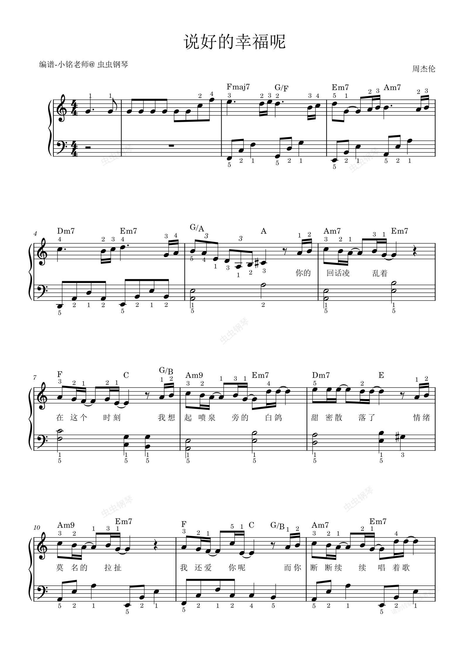 钢琴谱:说好的幸福呢 C调简易 原版和弦