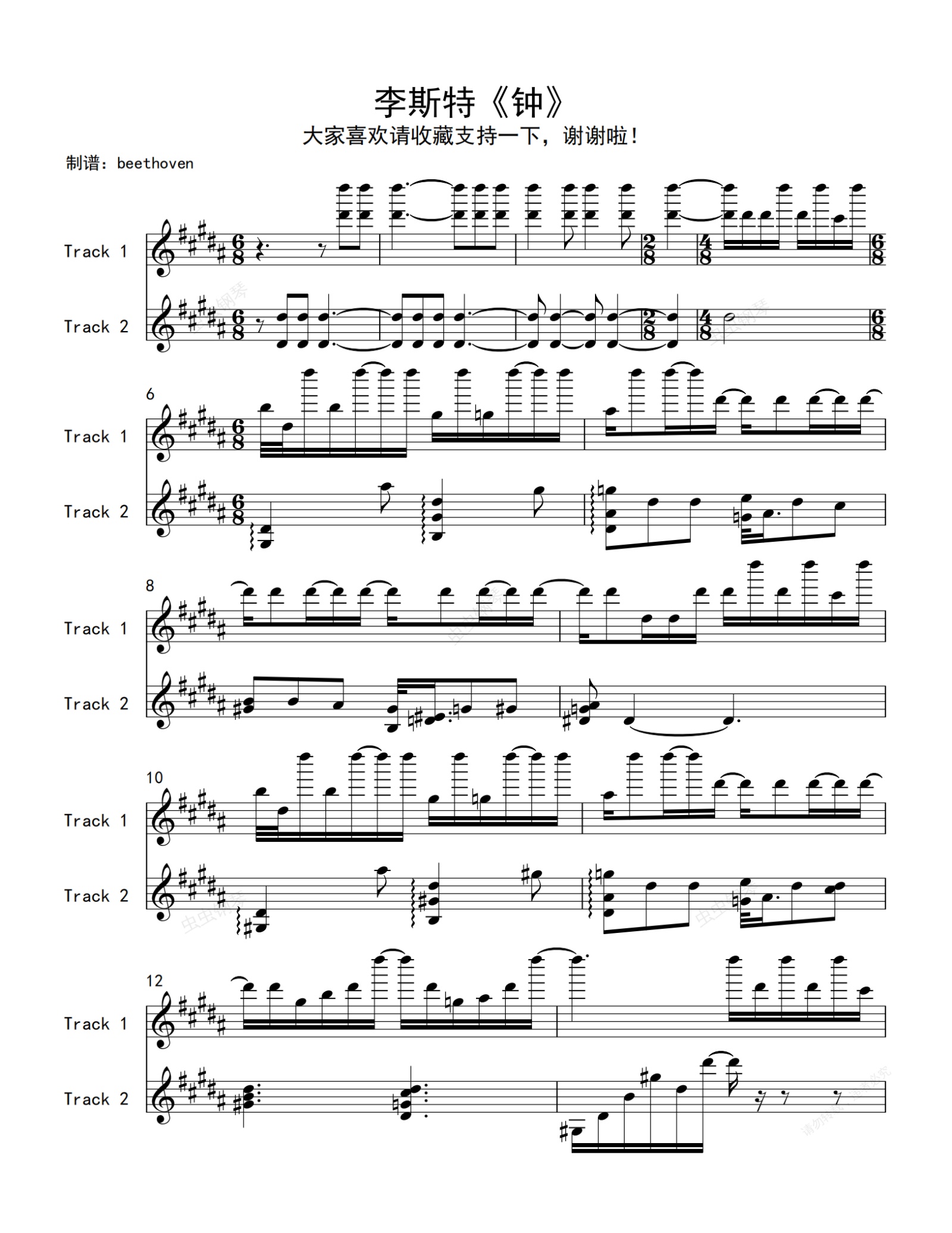 钢琴谱:李斯特_钟(完美)(帕格尼尼大练习曲)