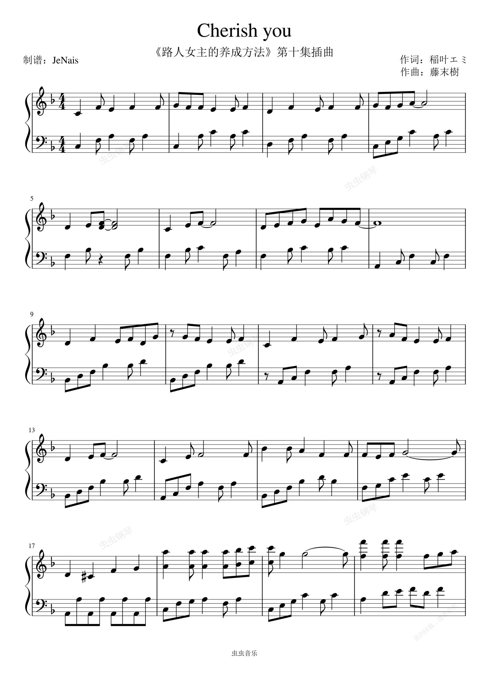 钢琴谱:Cherish you(《路人女主的养成方法》插曲)