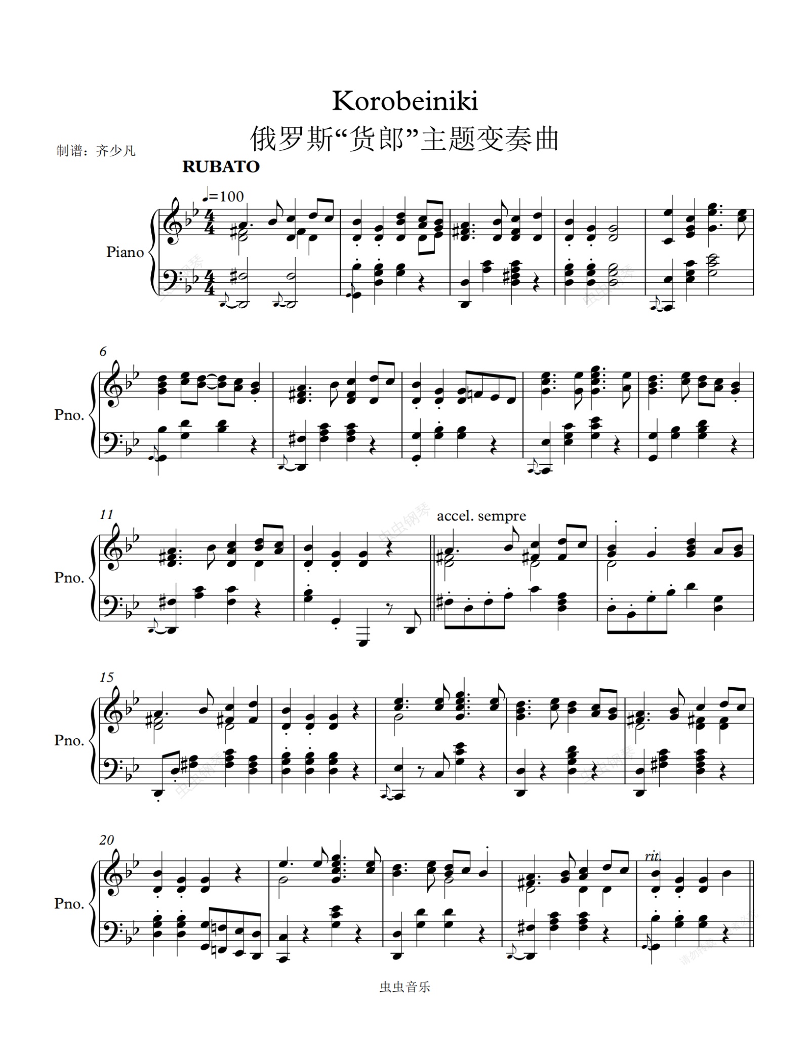 钢琴谱:俄罗斯“货郎”主题变奏曲