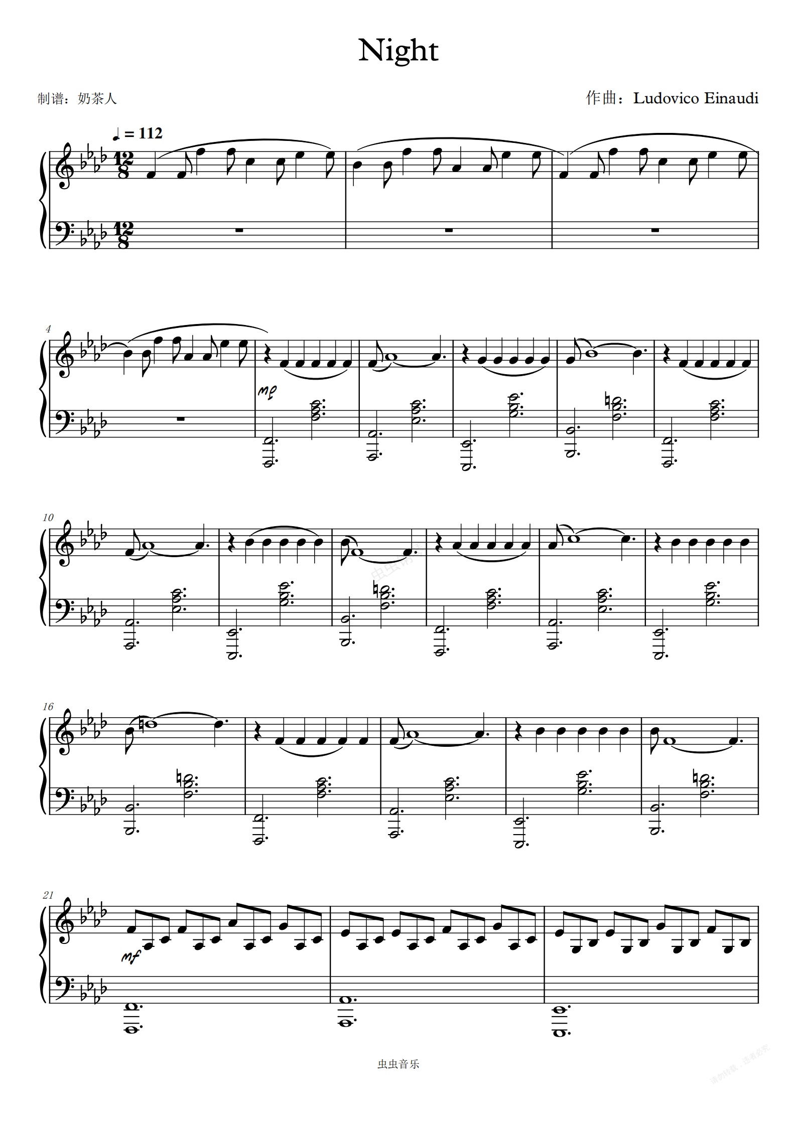 钢琴谱:《Night》Ludovico Einaudi大师的又一力作