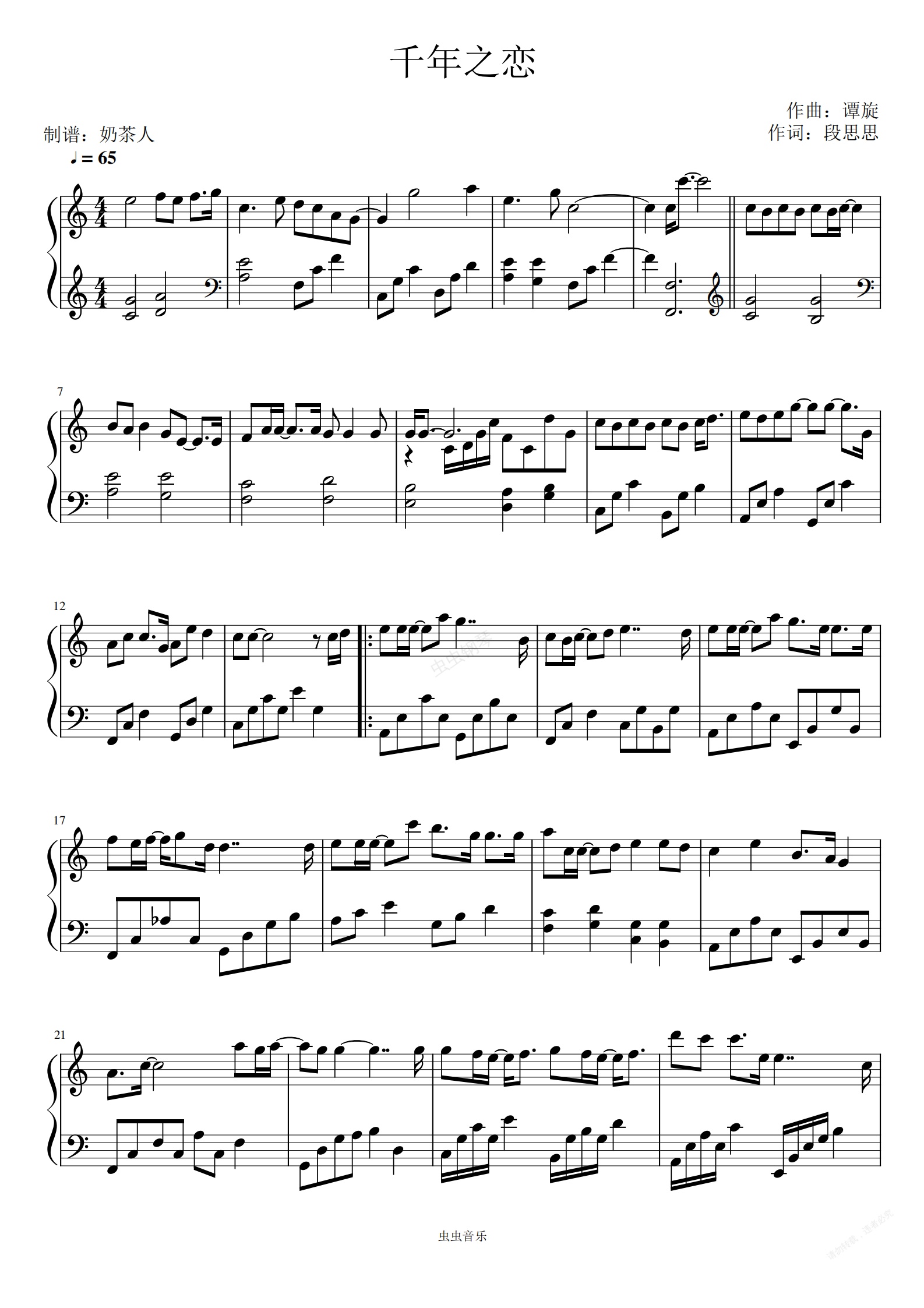 钢琴谱:《千年之恋》 双笙(《琉璃》电视剧插曲)