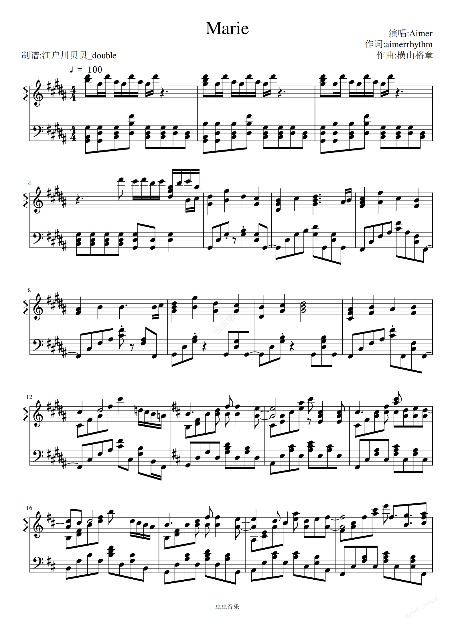 钢琴谱:【Aimer】《Marie》(日奥纪念展印象曲)