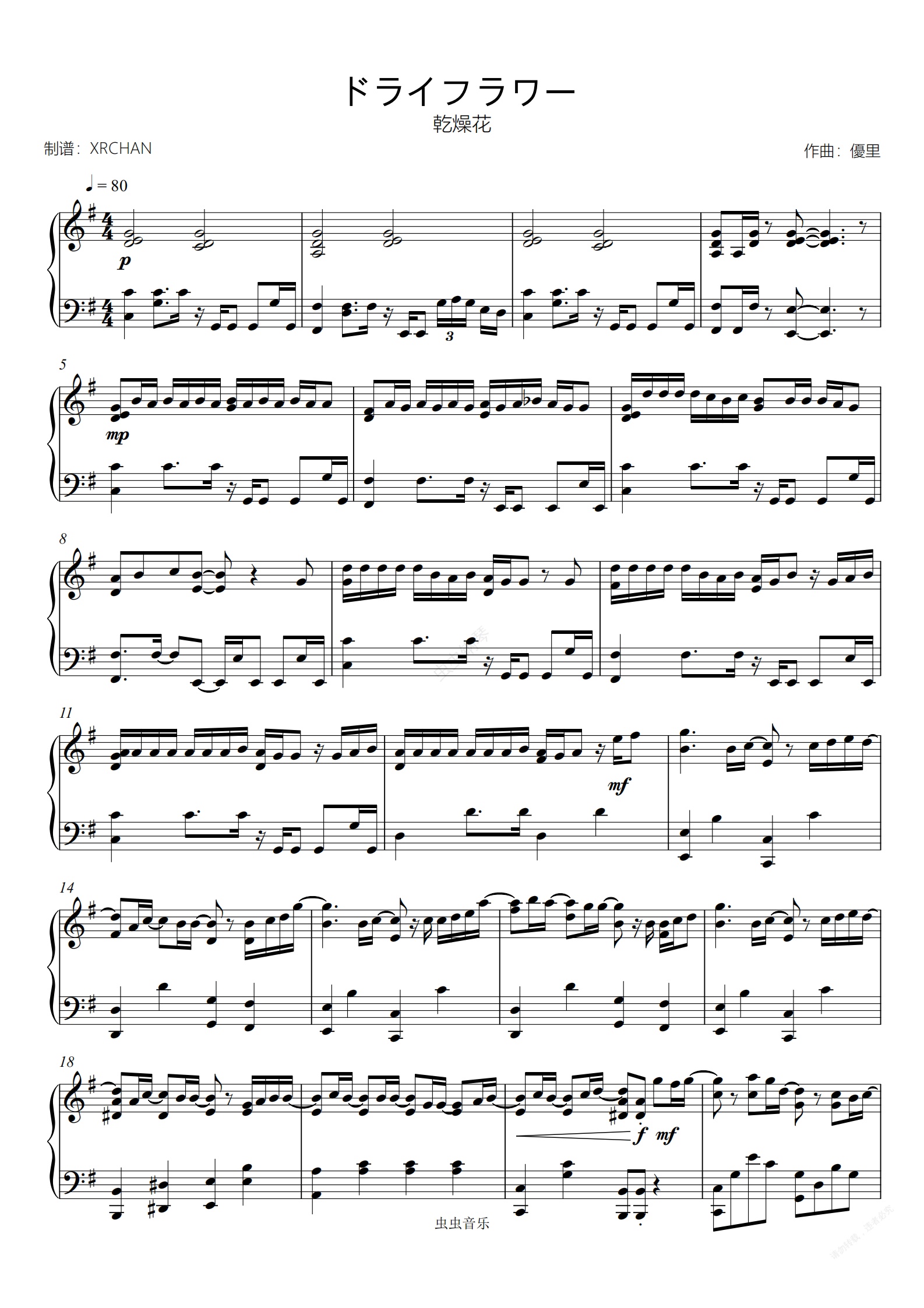 钢琴谱:優里 『ドライフラワー』 乾燥花