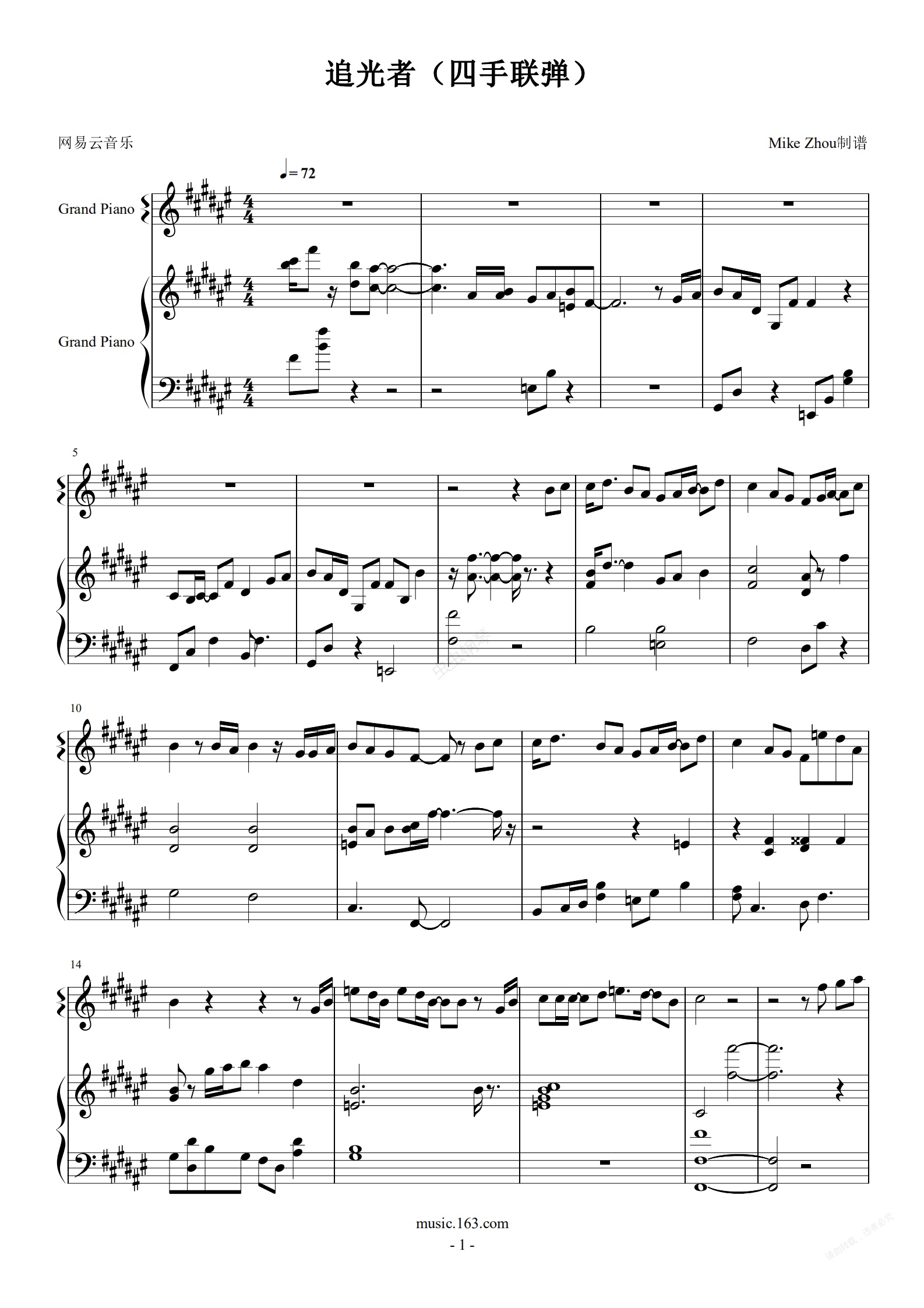 钢琴谱:追光者