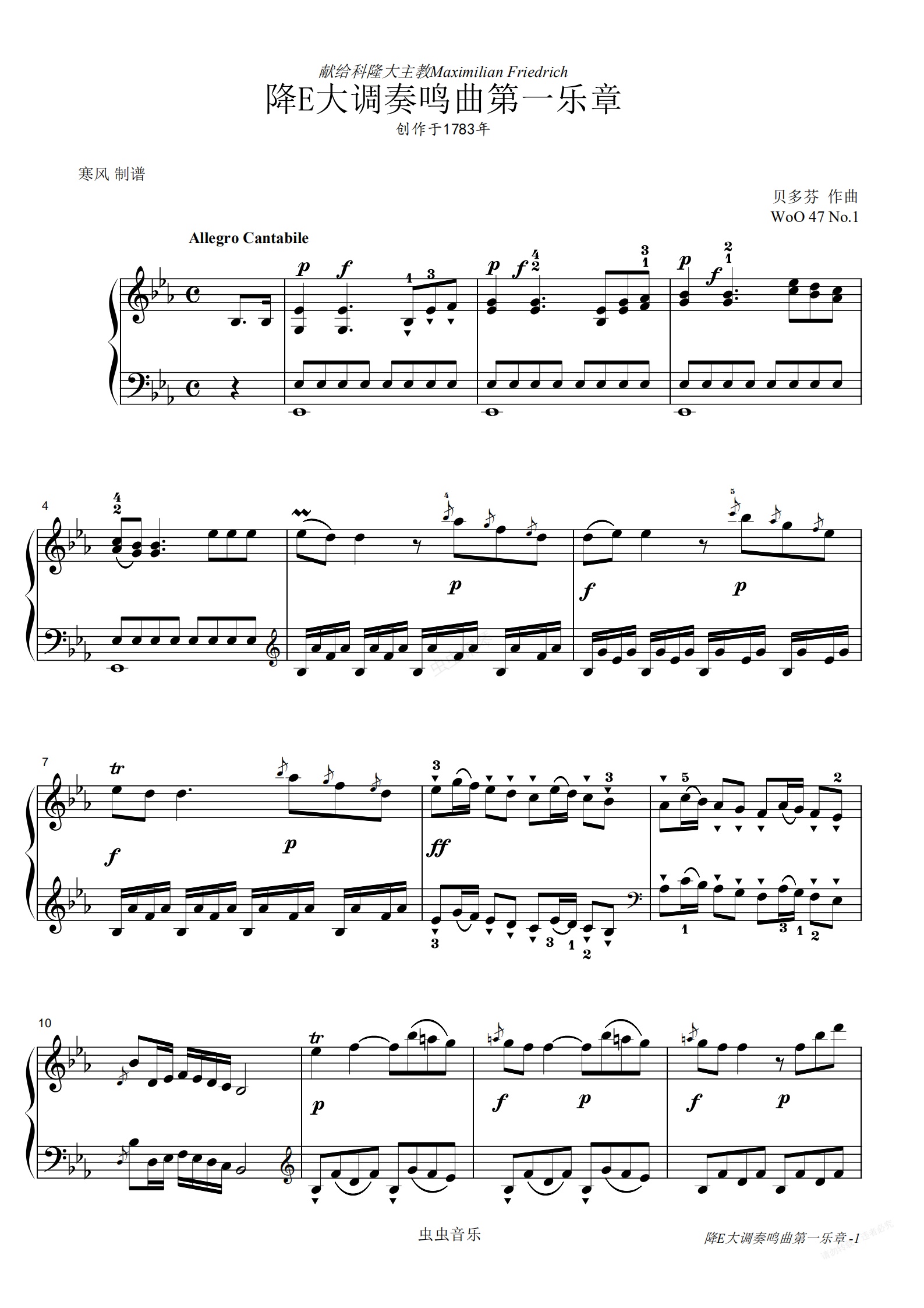 钢琴谱:贝多芬-Piano Sonata WoO 47 No.1第一乐章