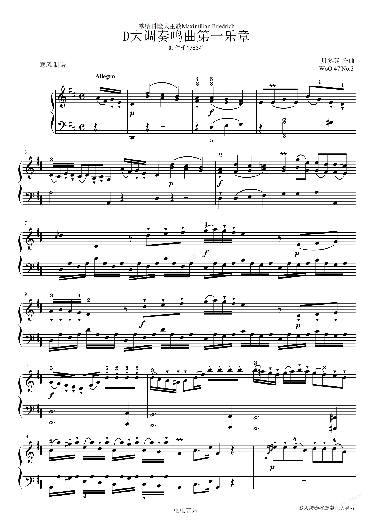 钢琴谱:贝多芬-Piano Sonata WoO47 No.3第一乐章