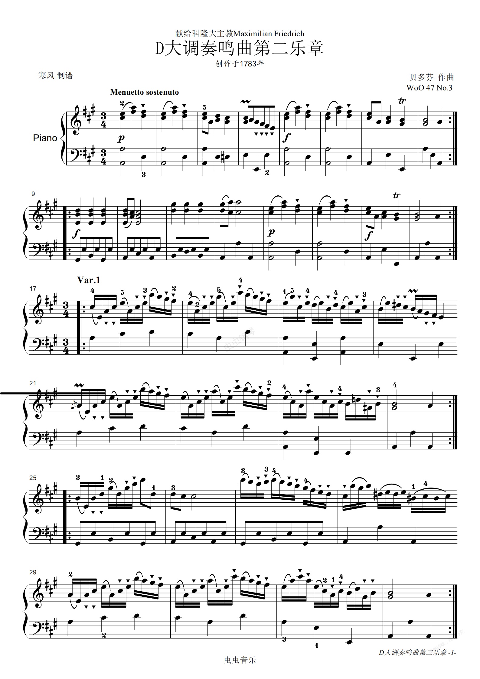 钢琴谱:贝多芬-Piano Sonata WoO47 No.3第二乐章
