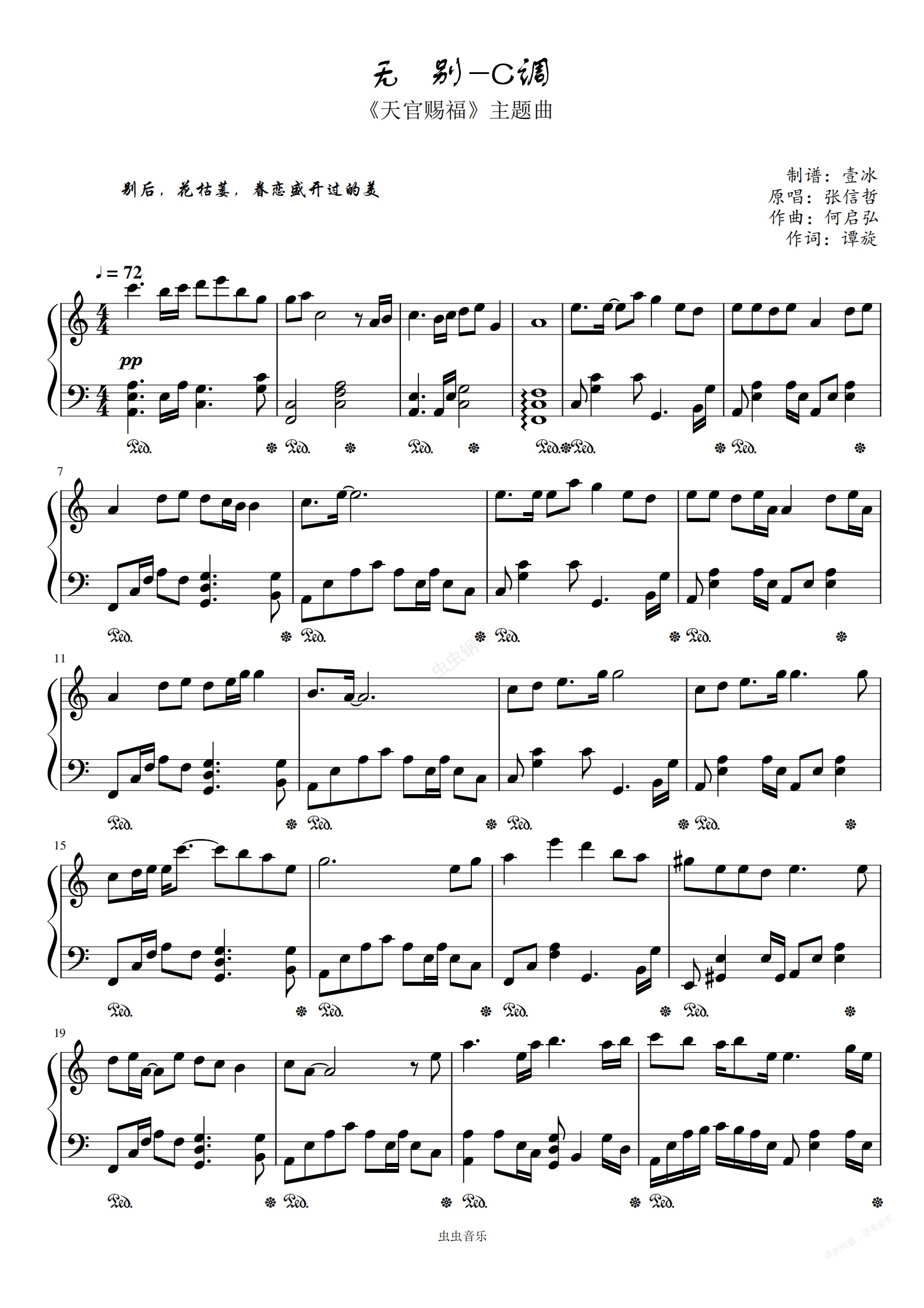 钢琴谱:无别//天官赐福主题曲-C调简单易上手