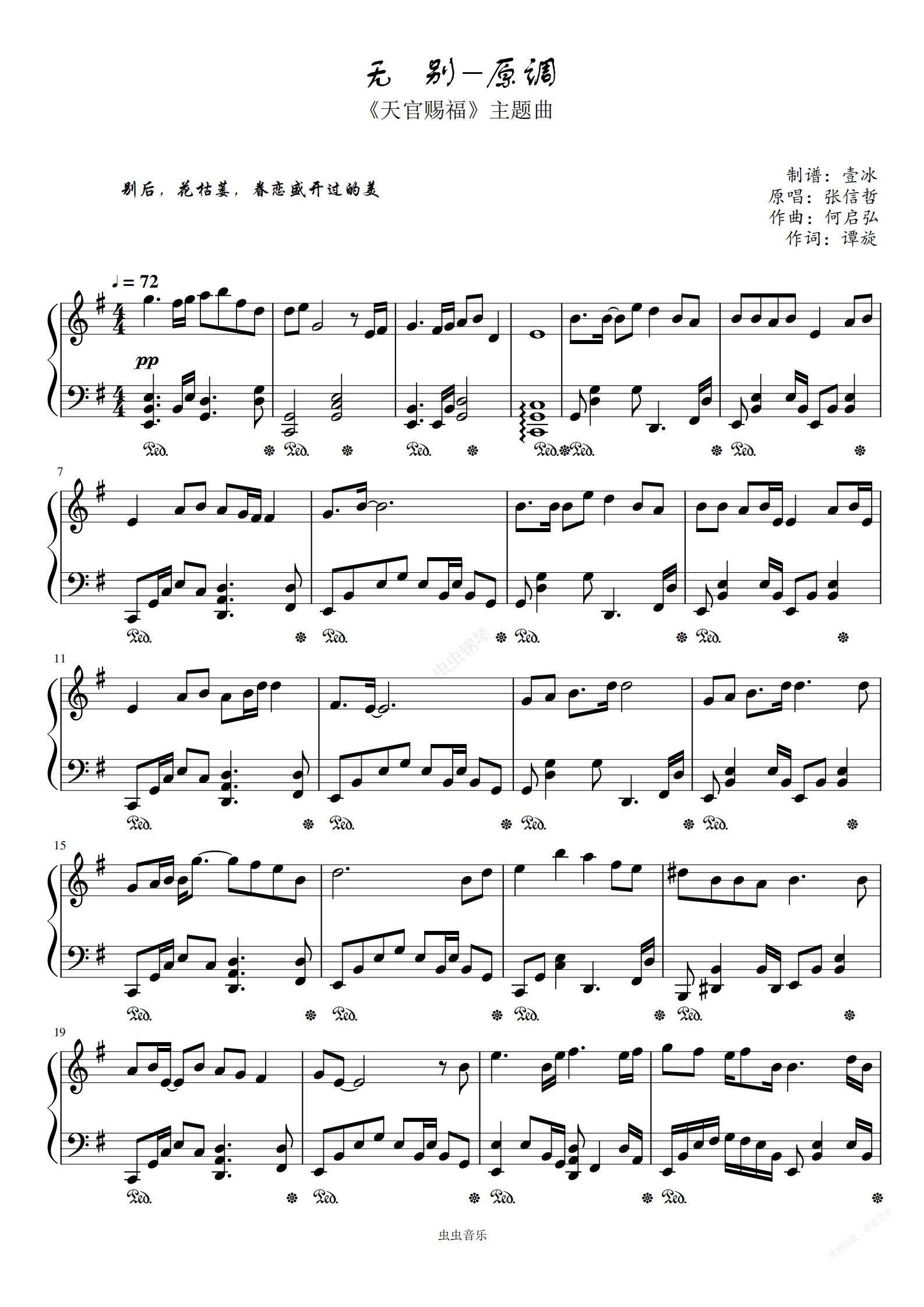 钢琴谱:无别//天官赐福主题曲-原调还原版